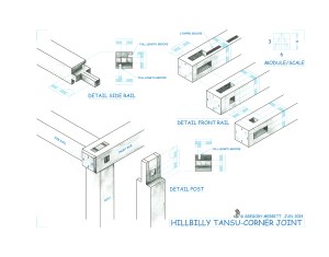 I’m sure this exists in the wild somewhere but I have yet to find a reference to it.  If any of you know of any, please point me in the right direction.  Same goes for any tansu construction details that you may know of.  I have several more joinery details to work out but this is a start.