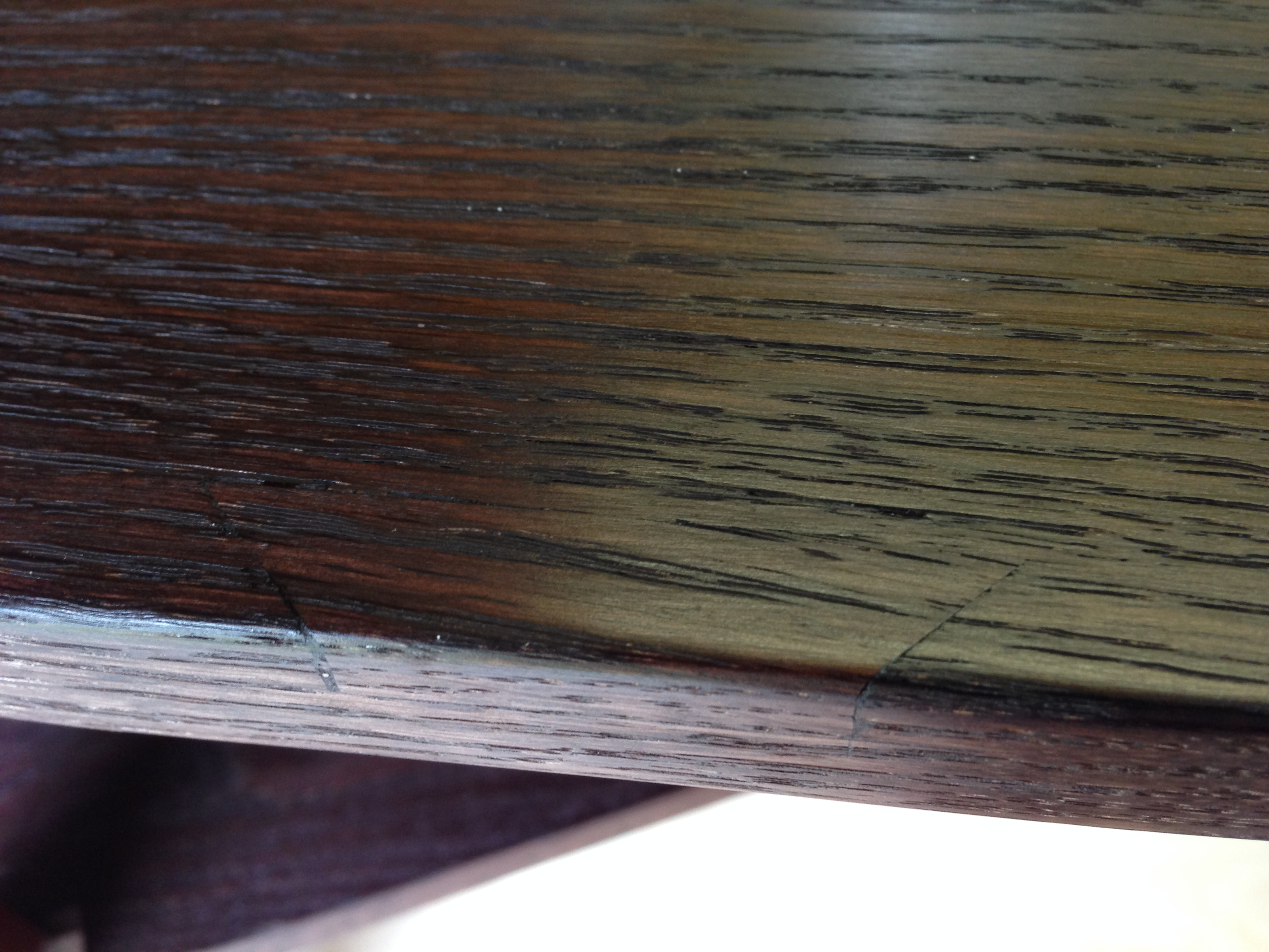 While ripping one of the tops to width, I hit some sort of void in the oak. I’ve never had this happen before, but it was a pretty big hole just below the surface. I should have taken a before photo but I was too worried about getting the patch in place. In any event the finished result didn’t turn out too bad.