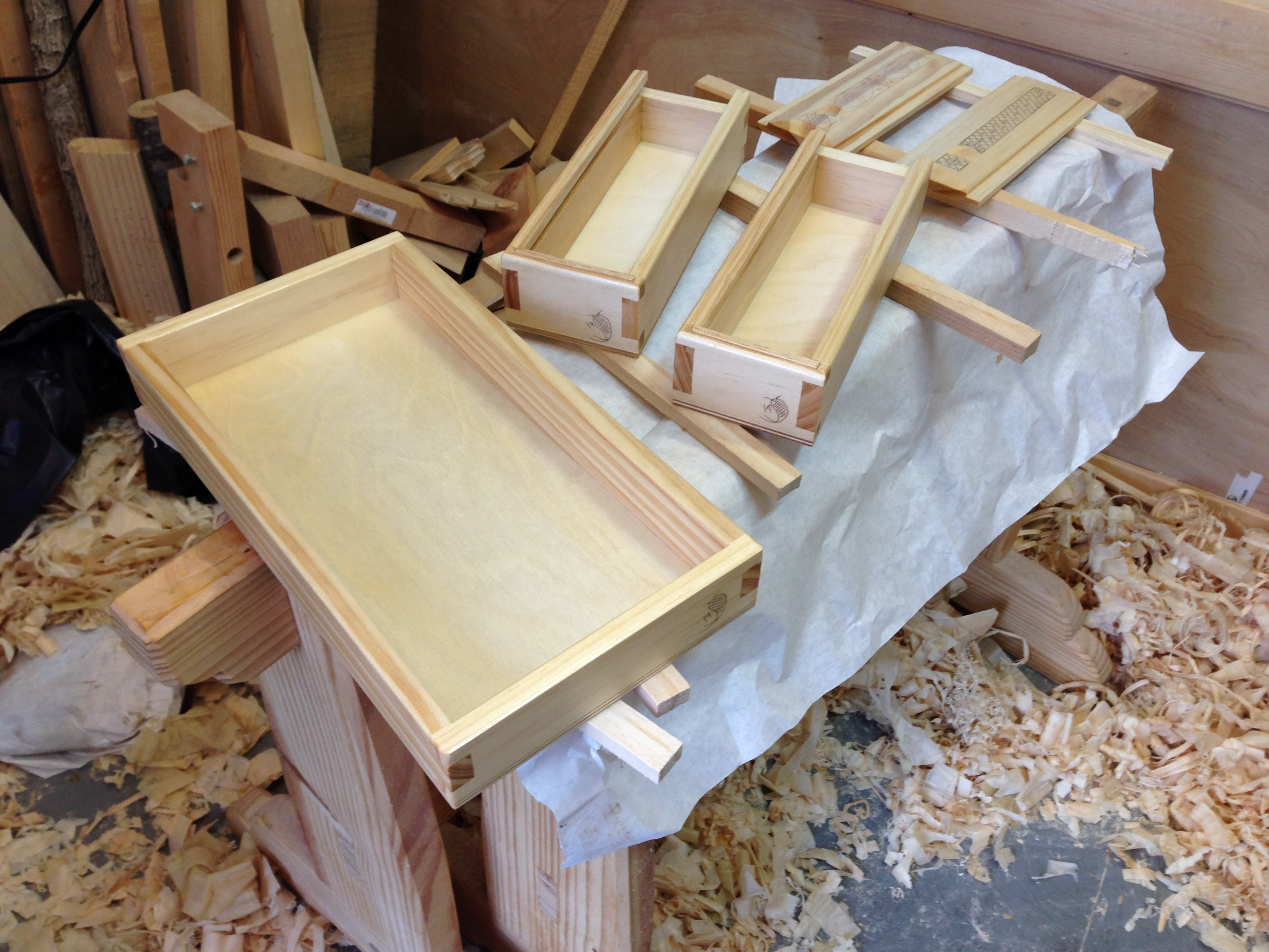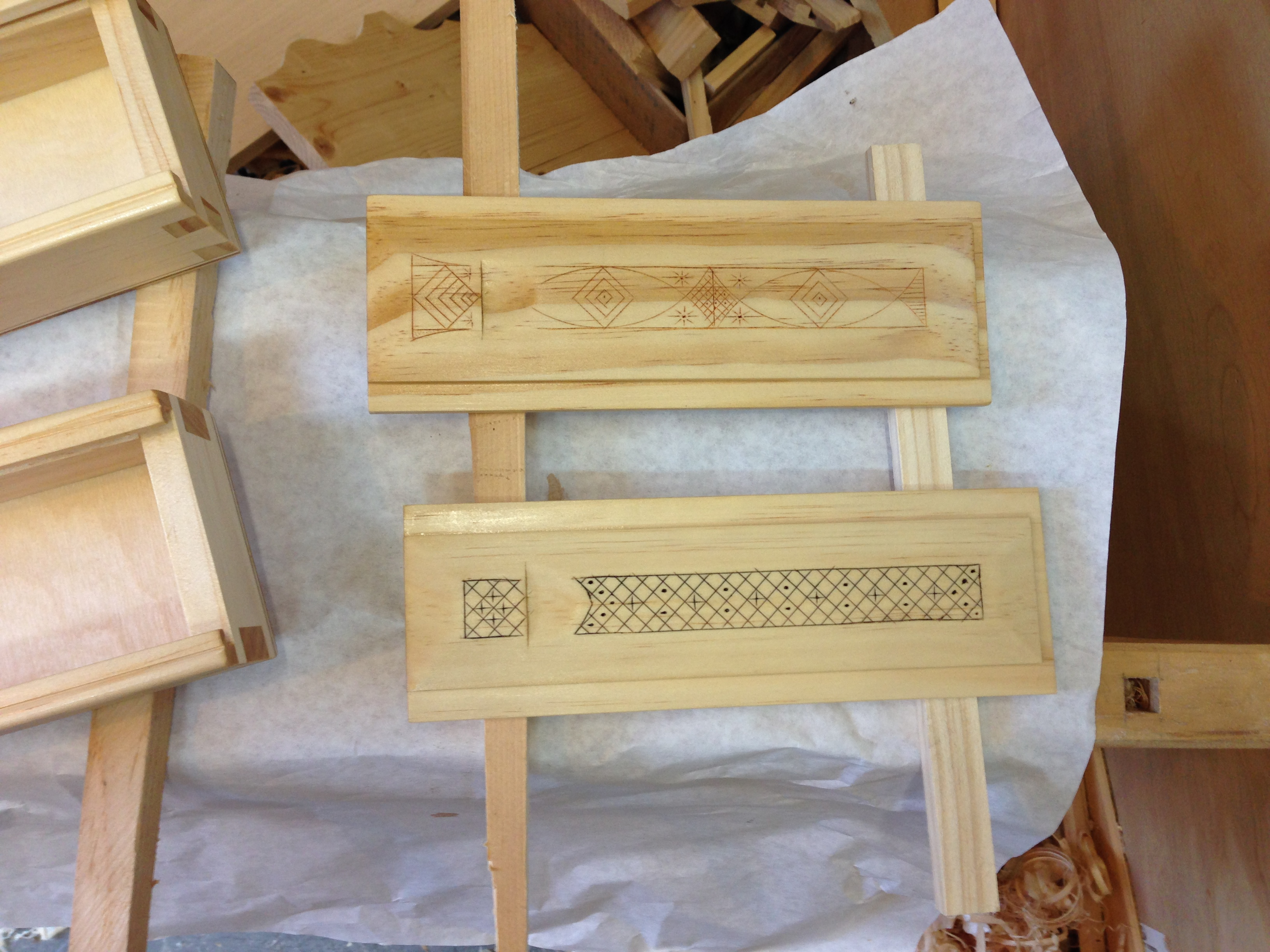 I been piecing on the boxes and trays after work this week. An hour, at the most, every evening before having to call it quits. Nothing ground breaking, just finish planing and a little sanding. I also added some decoration to the lids of each box. Today I managed to apply two coats of clear shellac. They’ll need another couple of coats before I buff them with steel wool, apply a paste wax and move them to the done pile.