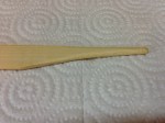 The sumishashi came pre-shaped but still needs to be prepared for use. Like most Japanese tools, the end-user is expected to make their own final adjustments as they see fit and to suite their needs. I left the line flat, wide line drawing end alone for now and focused my attention on the writing end. I used a sharp knife and shaped this end so that the mark produced will be more on scale with the size of joinery that I typically do. The final step to preparing the marking end is separate the fibers on the tip so that it will hold ink. Most sources agree that this is best accomplished by laying the sumisashi on a hard surface and tapping the first 1/2″ or so of the tip as you roll the sumisashi. So that is what I did.