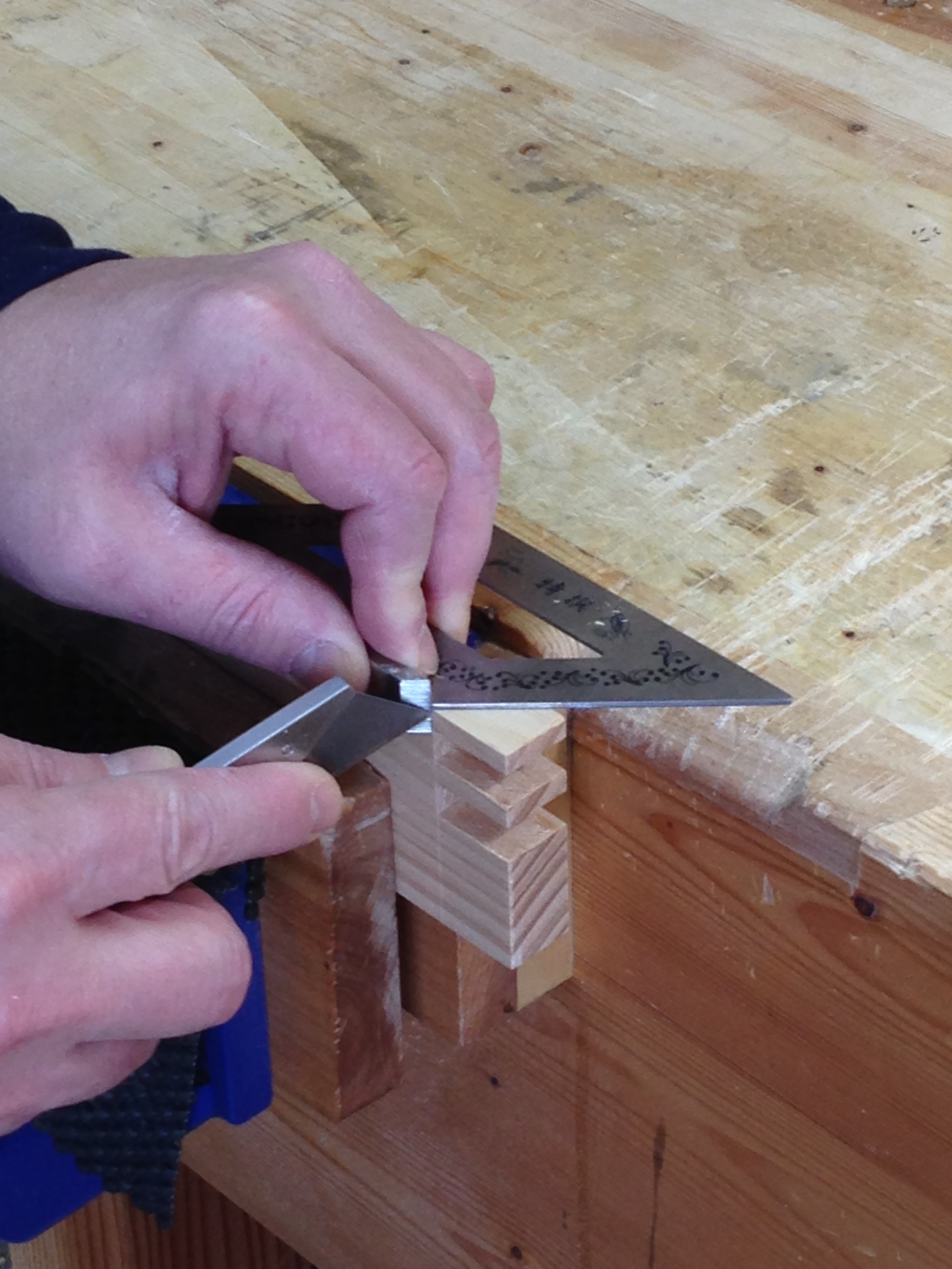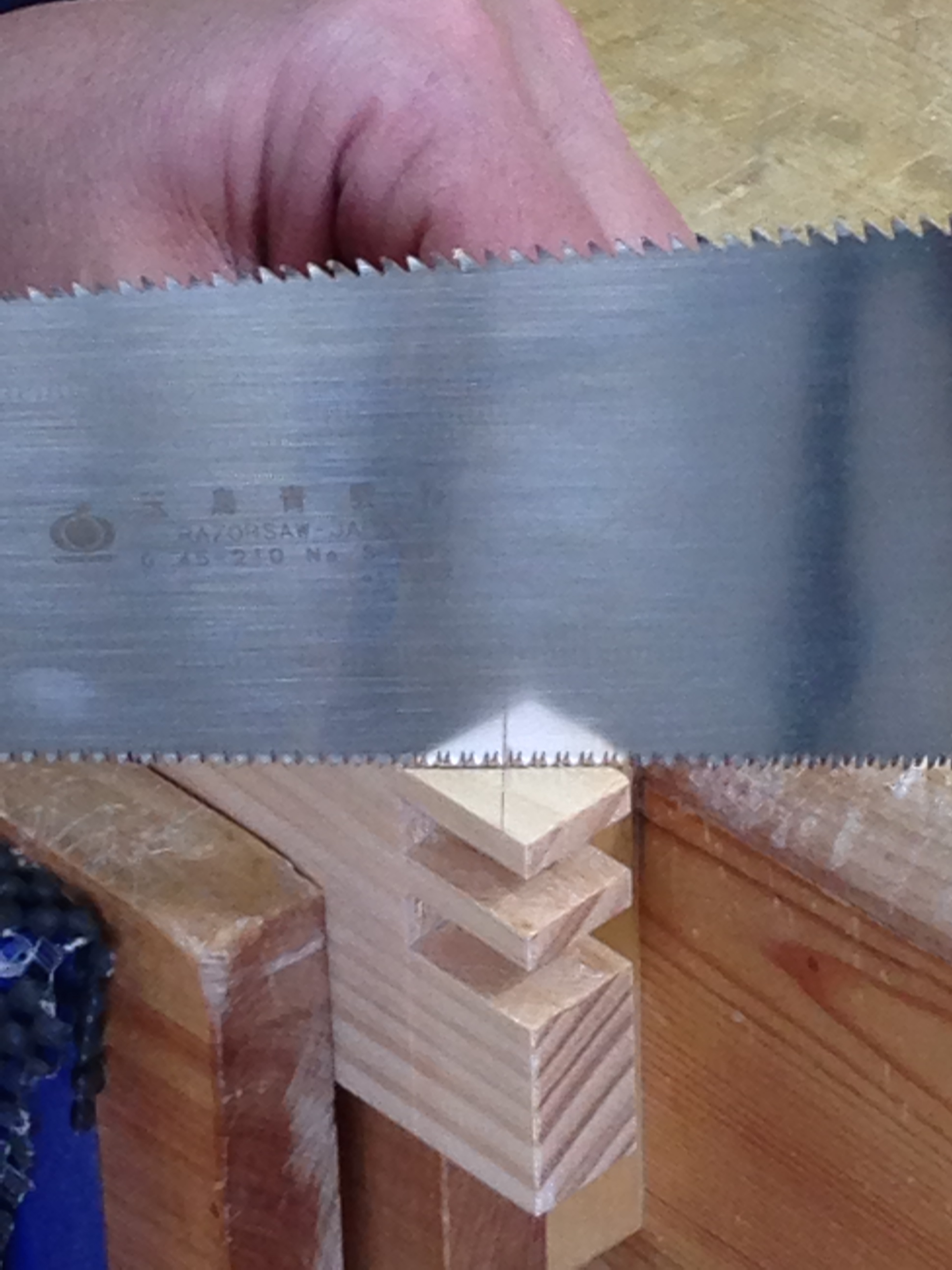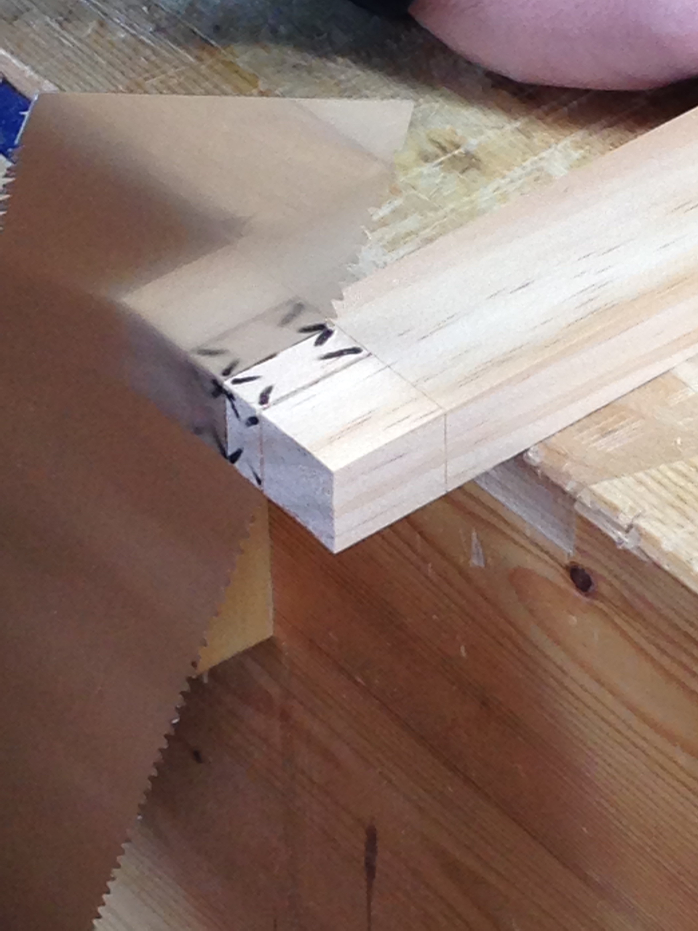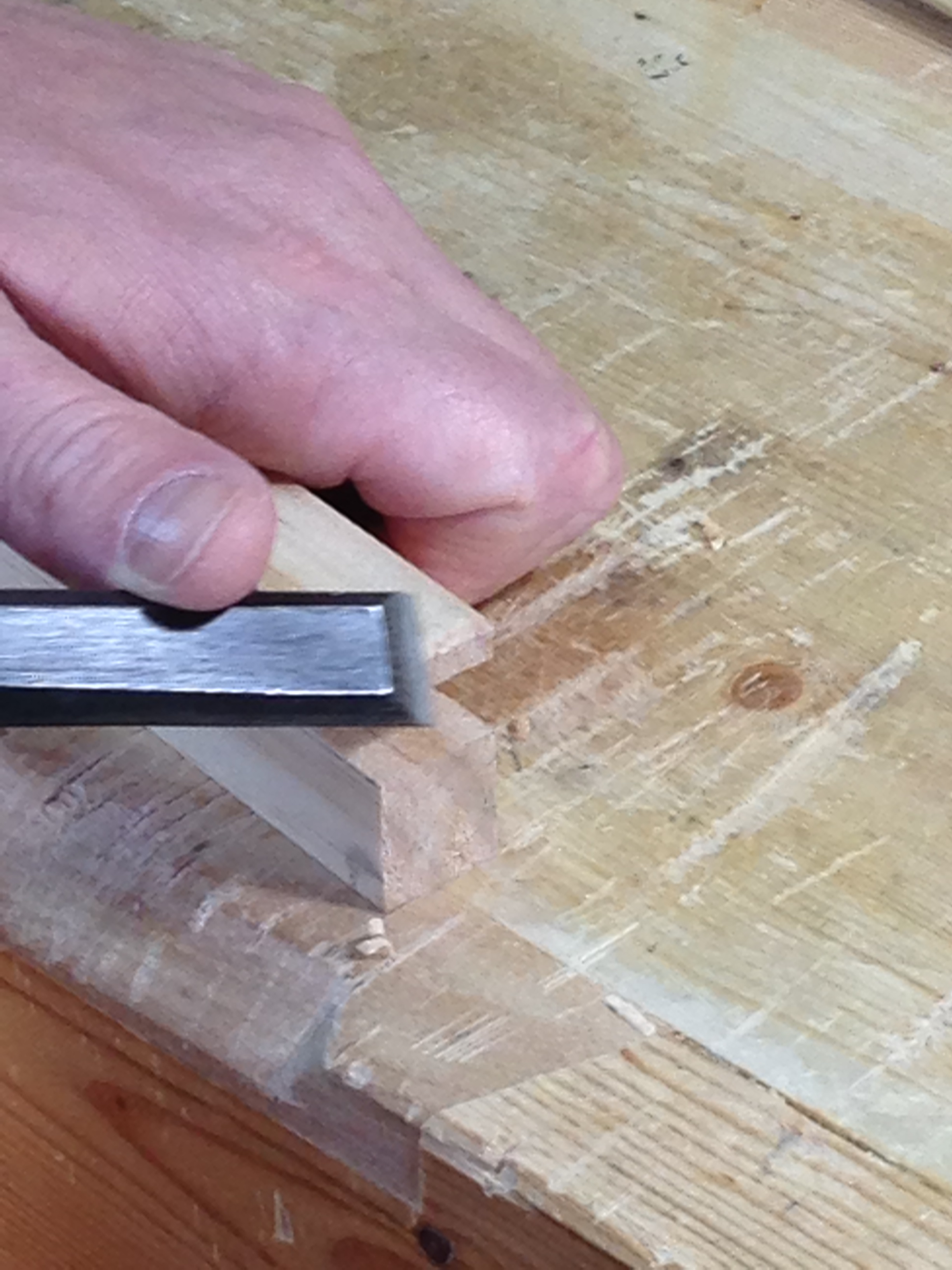 I then used a chisel to create a trough for the saw and sawed the waste.