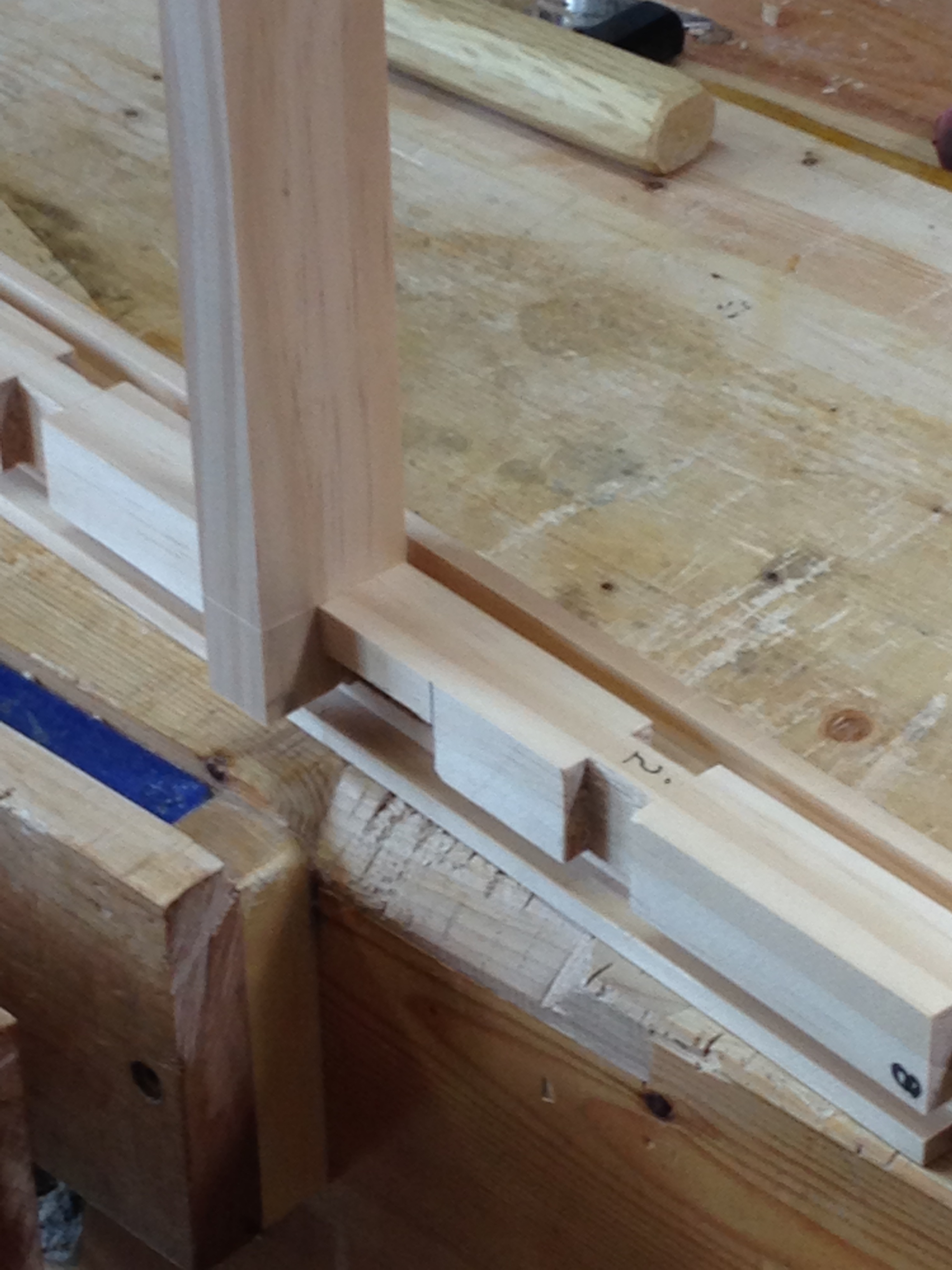 With all of the rear bearers completed I began tackling the front bearers. This joint is similar to the rear bearer but with the addition of a bird’s beak detail. While mostly decorative, the bird’s beak adds some additional strength, glue surface and helps to index the front bearer square.
