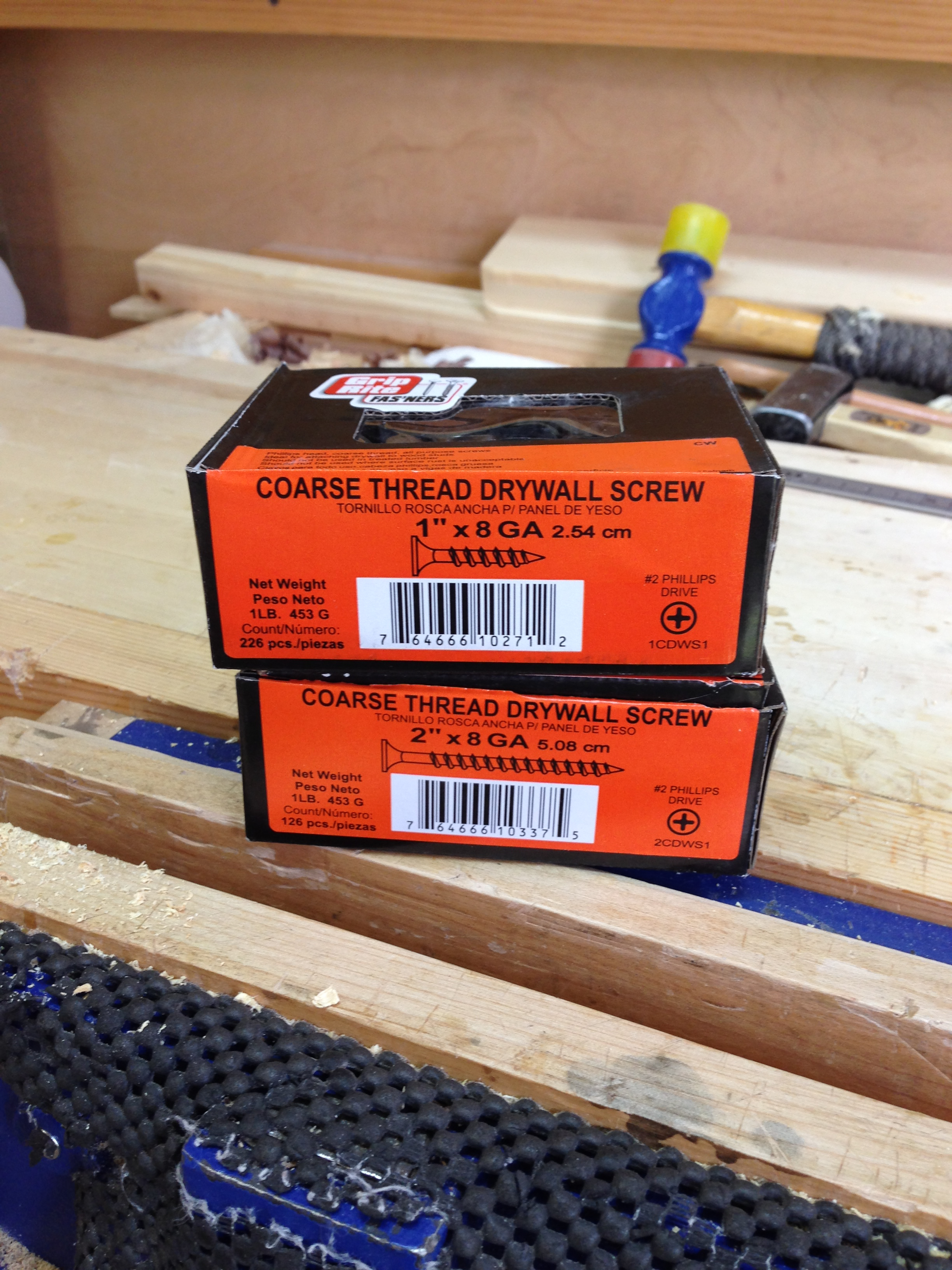 I also needed to purchase two lengths of screws.  For assembling the majority of the box I need 2″ long screws.  For attaching the battens to the lid I needed 1″ long screws.  I went with the good old standby, coarse thread drywall screws.  They are inexpensive and will work just fine for holding this toolbox together.  I wouldn’t use them for any furniture building though.  Hell, their even black oxide finish.  So I get a “decorative” bonus to boot.