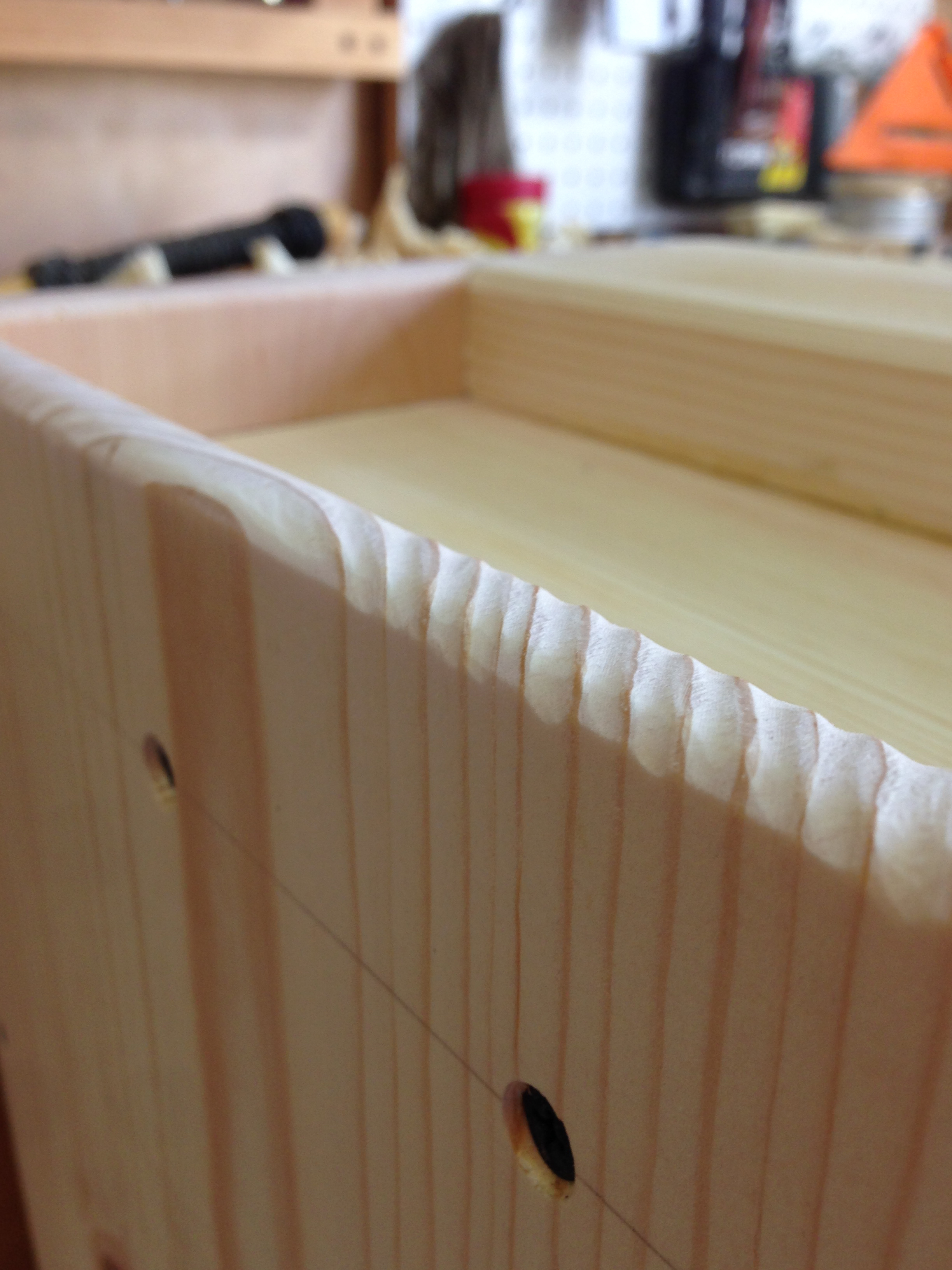 A couple of photos looking down the sides of the Japanese toolbox that I’m building.