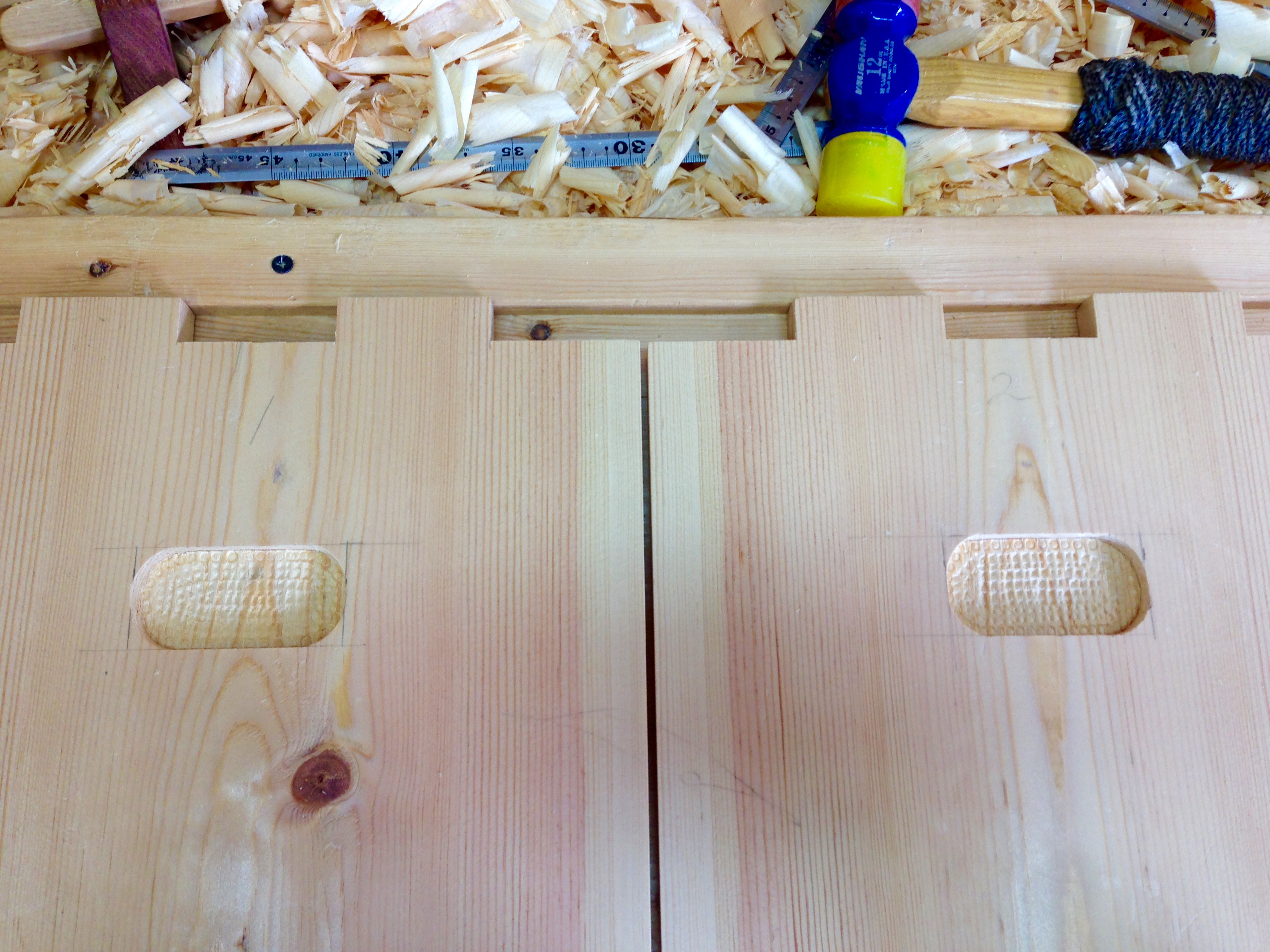 I decided to tackle the handle recesses next.  This detail is directly from the original and I’m not entirely sure about its utility.  More of a finger hold than a handle but we will see how well it works.