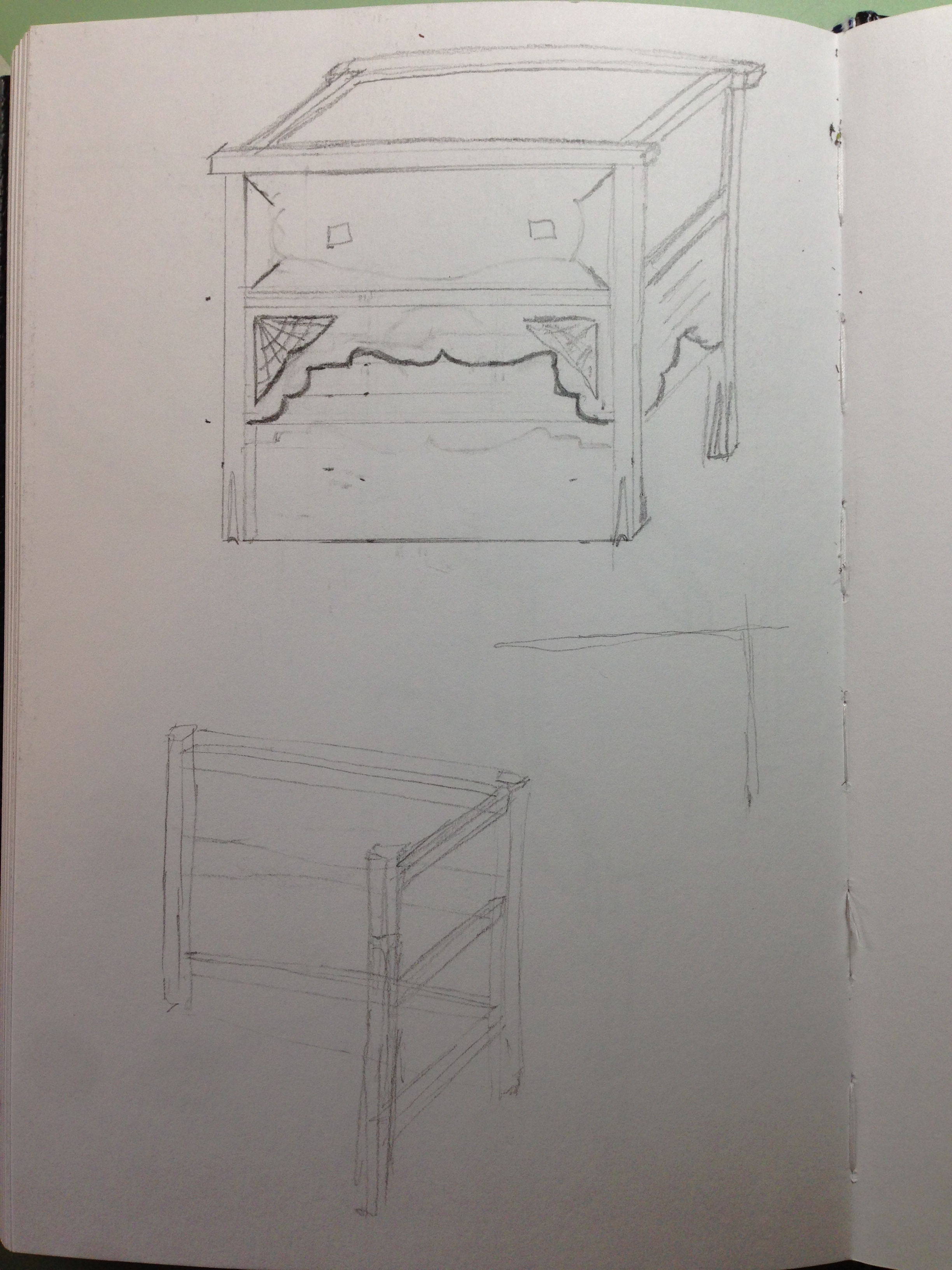 Then moving to a sketch with a slightly different layout (top) then to a design that I am happy with (bottom). I also began working out the basic size (proportions) for some of the major elements. It’s rare that it goes this quickly. So don’t think this is how it normally works for me.