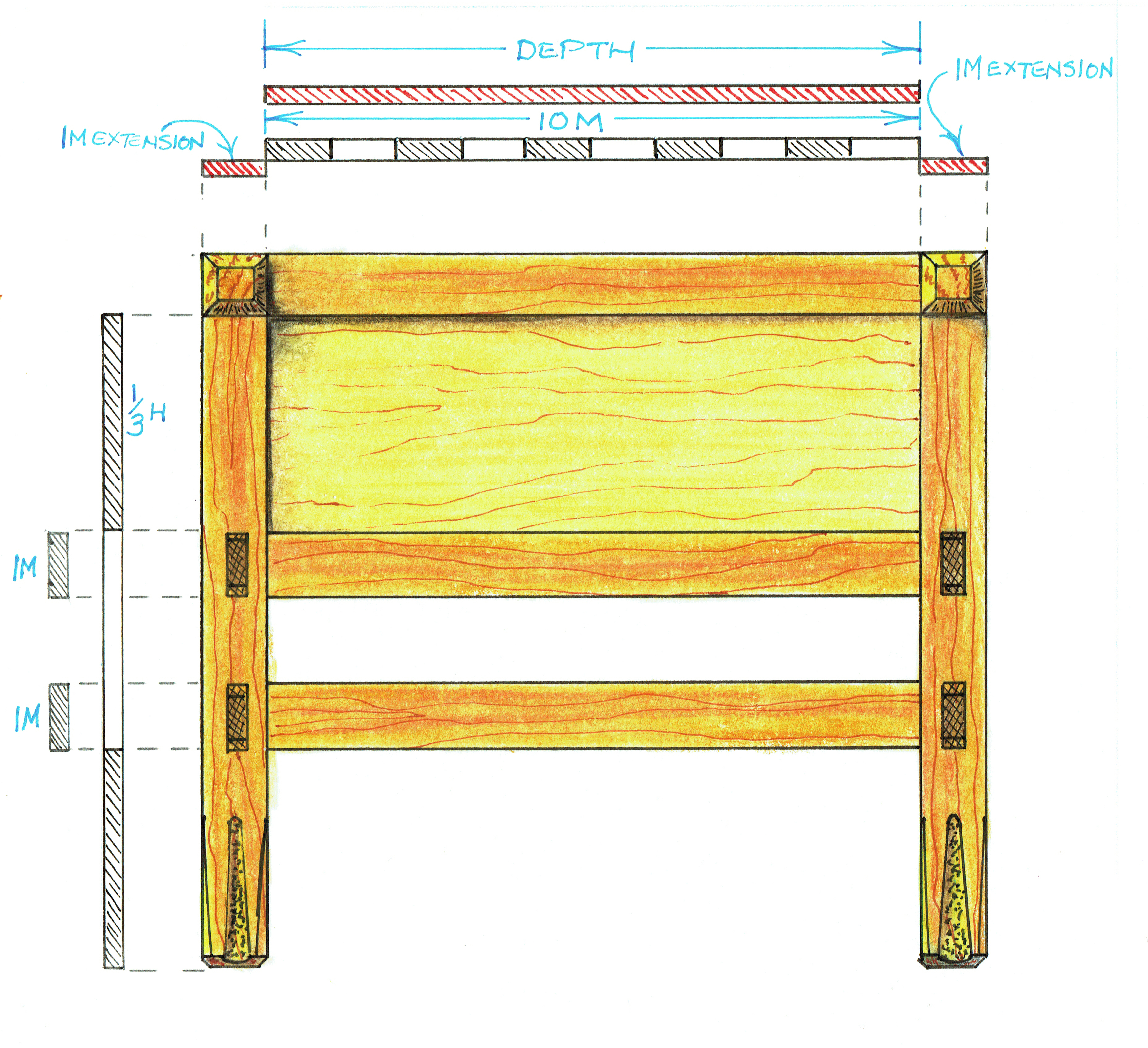 Then pulling the 1/3H cues from the front elevation I can establish the side rail locations.  As with the front elevation, locating the side rails is a matter of personal preference, artistic license or, as in my case, dictated by the intended joinery.  I’ll be using the same joint as in the top corners.  Just changing the orientation to accommodate the structure as well as the front apron.