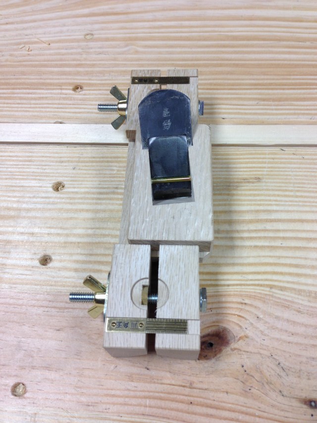 To further add accuracy and consistency a chamfering guide can be employed or you can utilize a specialty plane. I have a Japanese chamfering plane (mentori wanna) that I purchased almost a year ago but have never used before. It can be adjusted for width, the blade is skewed and the blade carrier can be moved side to side so that you can utilize the full width of the blade. This plane only does one thing, but it does it exceedingly well.