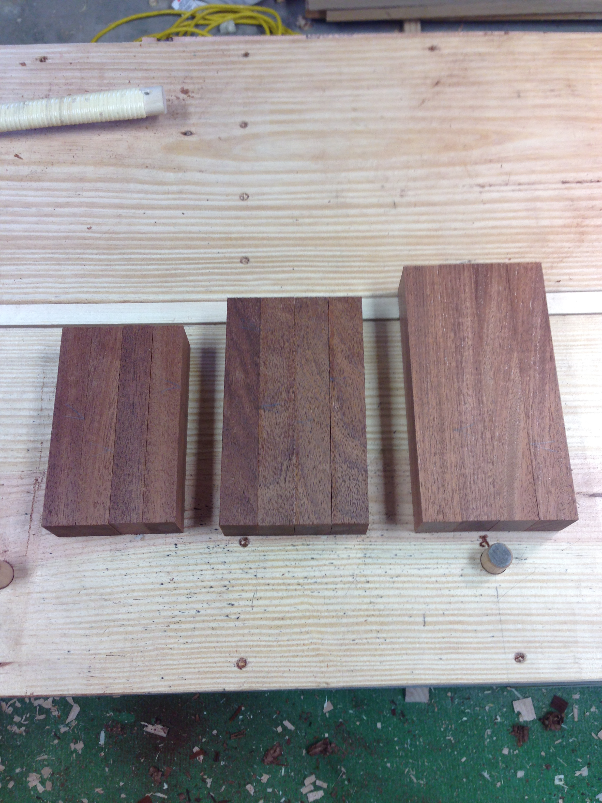 Anyway, five minutes in the attic and I had enough mahogany to make six cam clamps. Paul demonstrates a cam clamp with an 8″ clamping capacity. I’ll be making two of those plus two with a 12″ capacity and two with a 16″ capacity. I’m also lengthening the heads as the capacity increases. In other words, as clamping capacity increases, so does the reach.