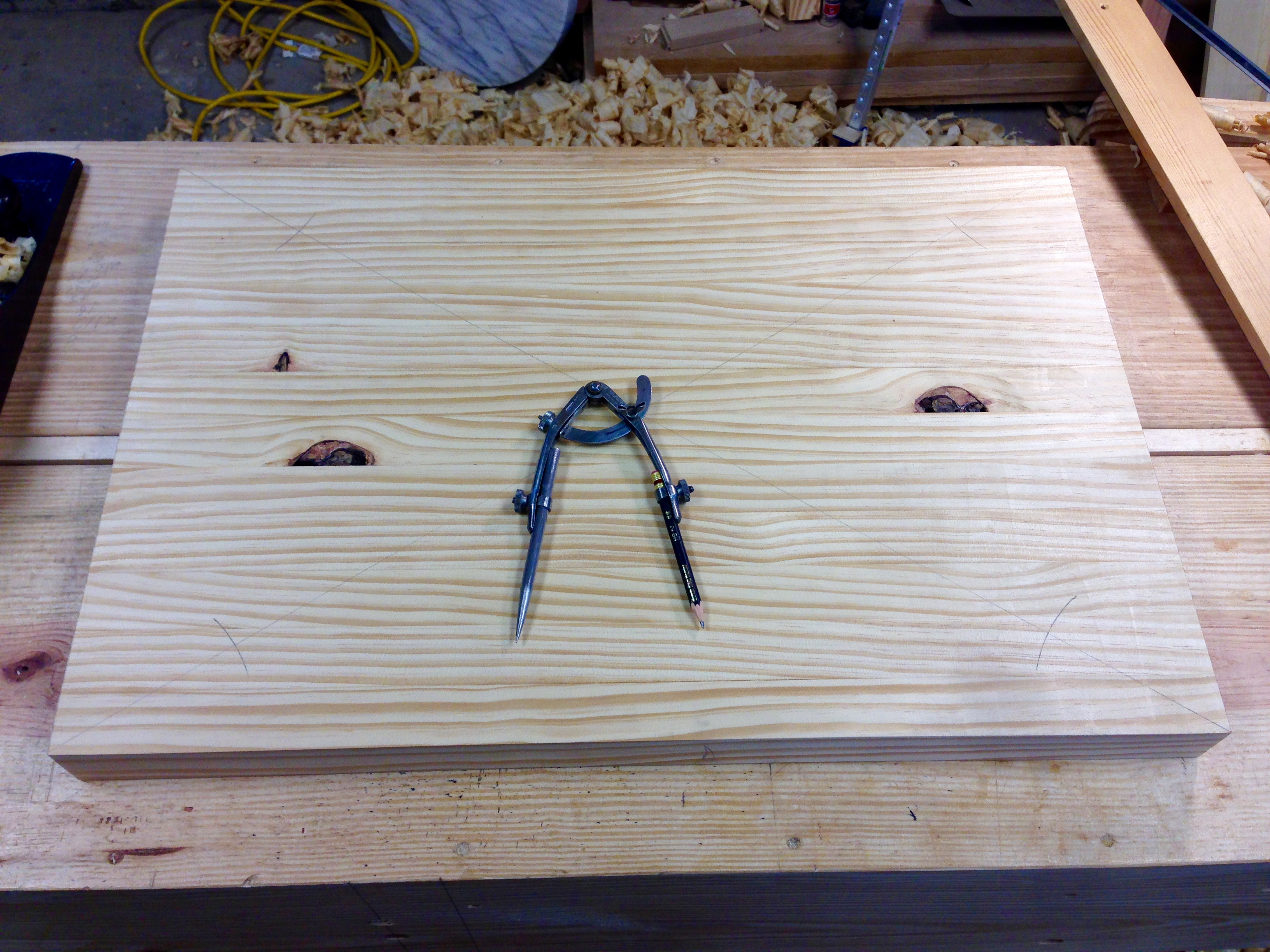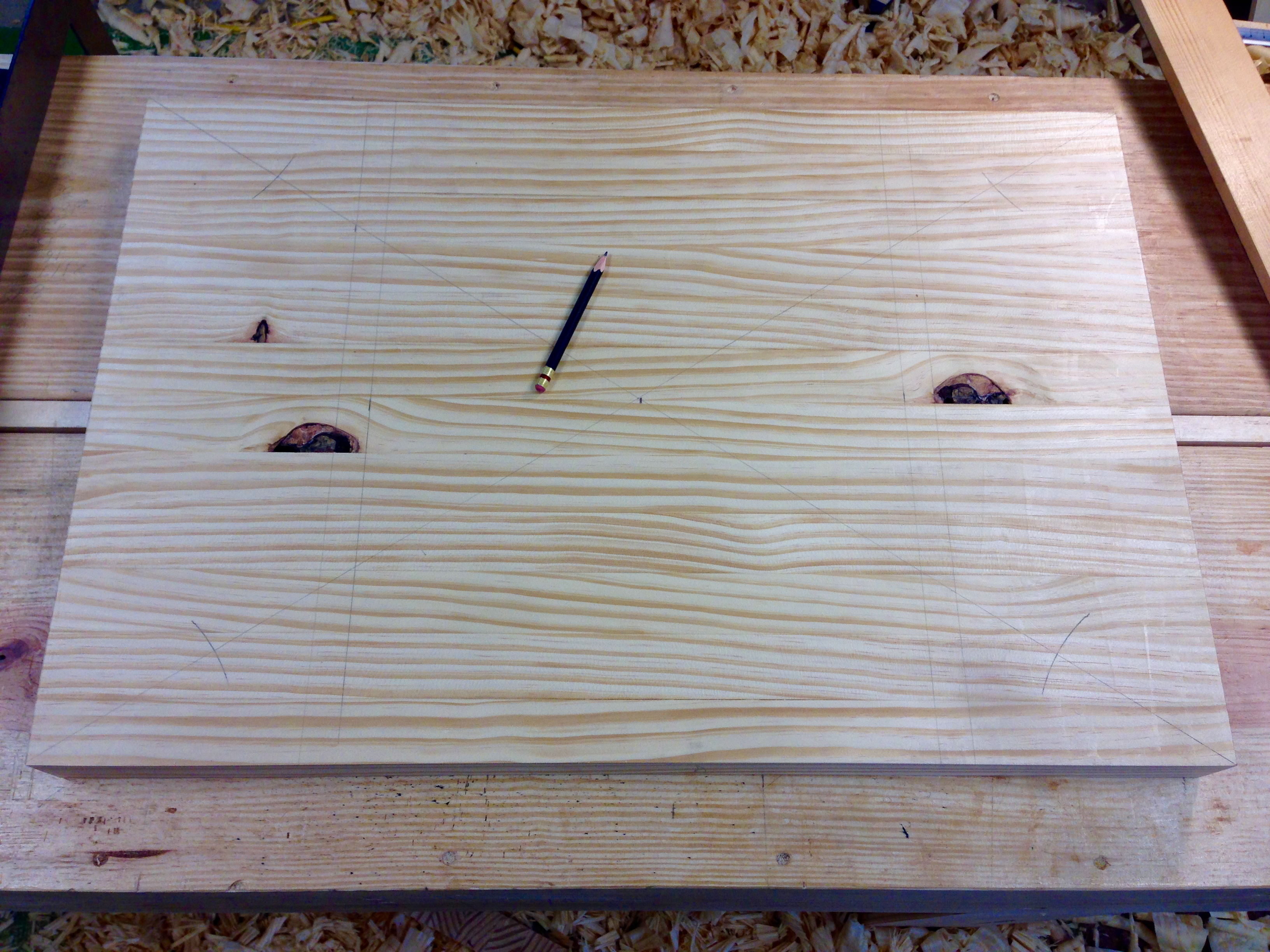 Here is the bottom. See, the knots are still there but hidden away out of sight. I also laid out the sight lines for the legs as well as the actual location for the legs.