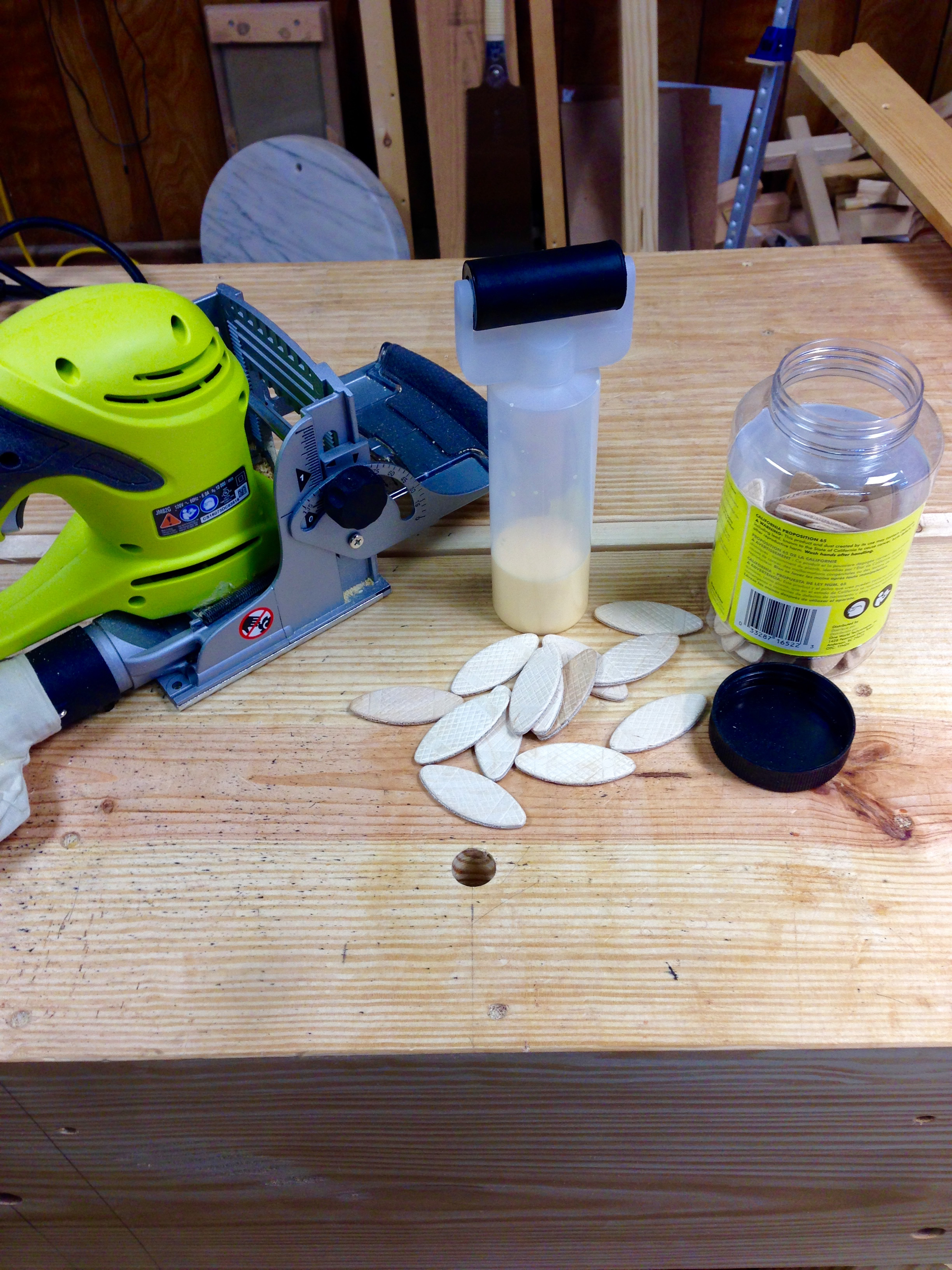If this was the only project that I thought I would be doing this type of multi-board lamination on, then I would have went with a different option. Since I know there wil be many more of these laminations in my future, the biscuit joiner made the most sense.