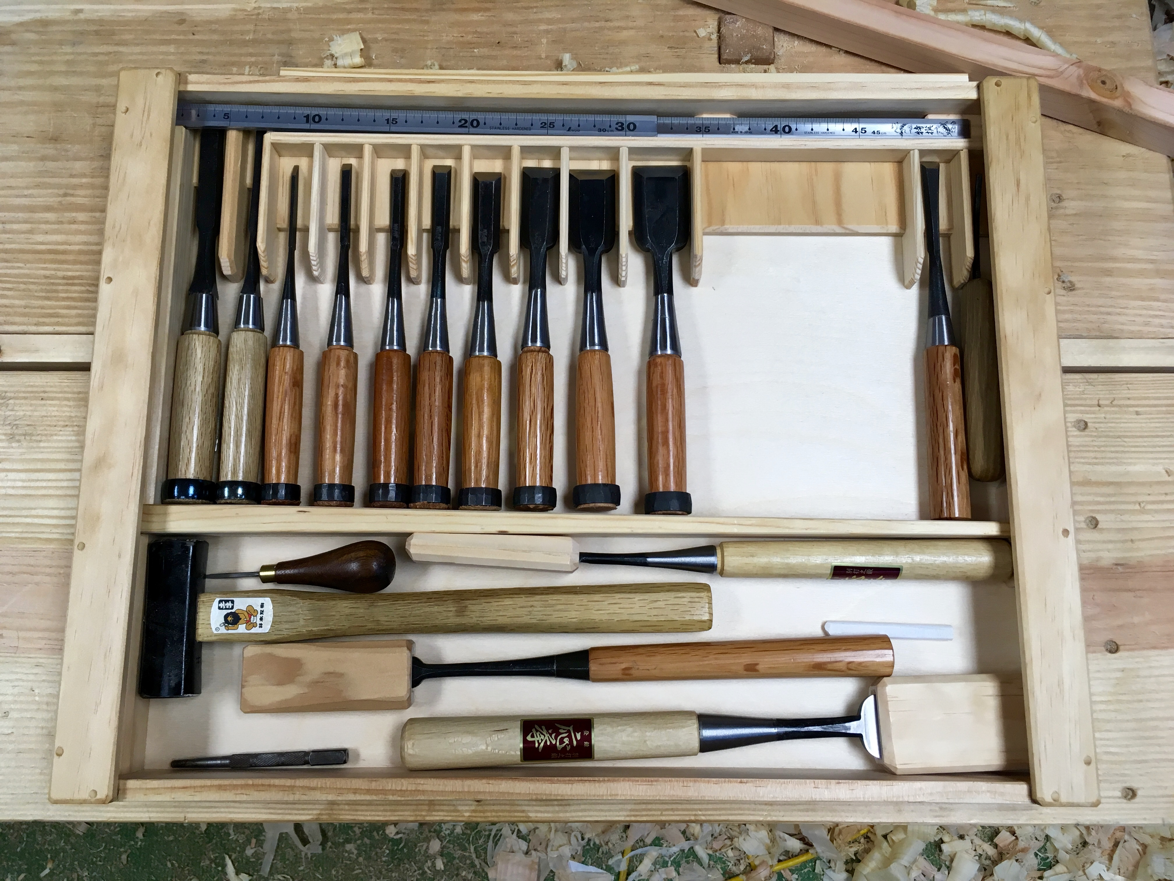 The chisel tray is ready to go to work and I’m happy with the way it turned out. It holds everything that I intended and has a little more room for any additions to the kit.