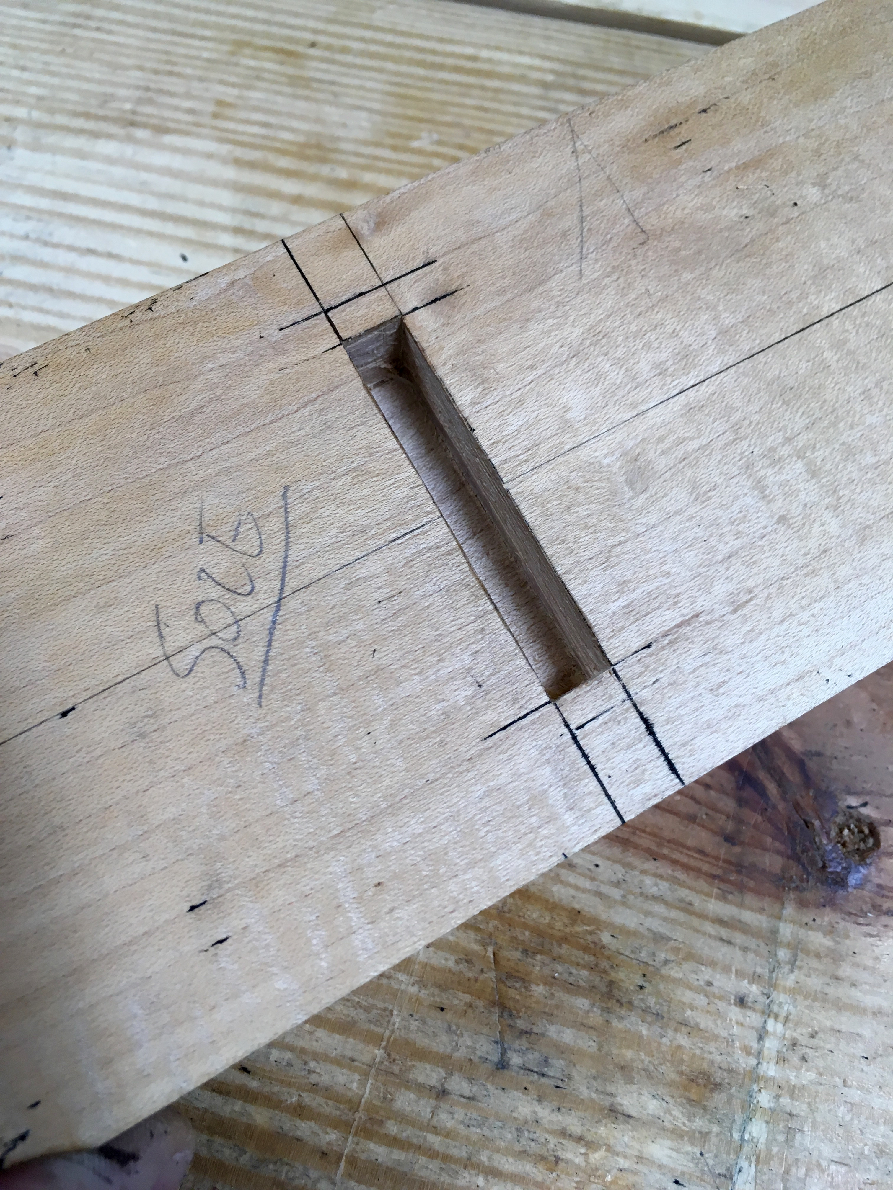 Then I flipped the block over and chopped the blade ramp and escapement.  Then cut the slots that secure the wedge-shaped blade.  My apologies, but I neglected to take photos of that part of the process.  Plus I’m still not comfortable that I’m correct in my process.  So I’ll jump to a shot of fitting the blade.