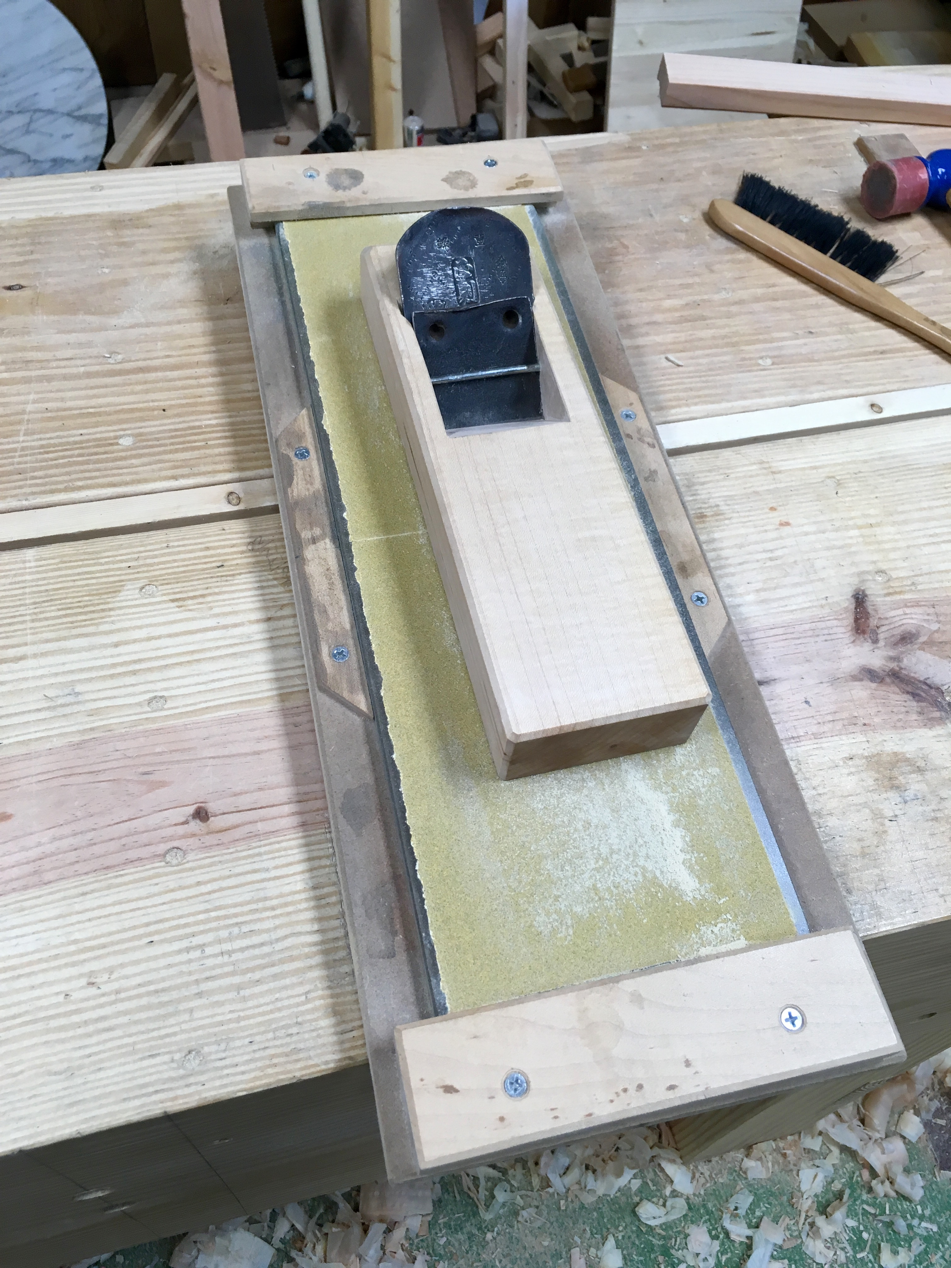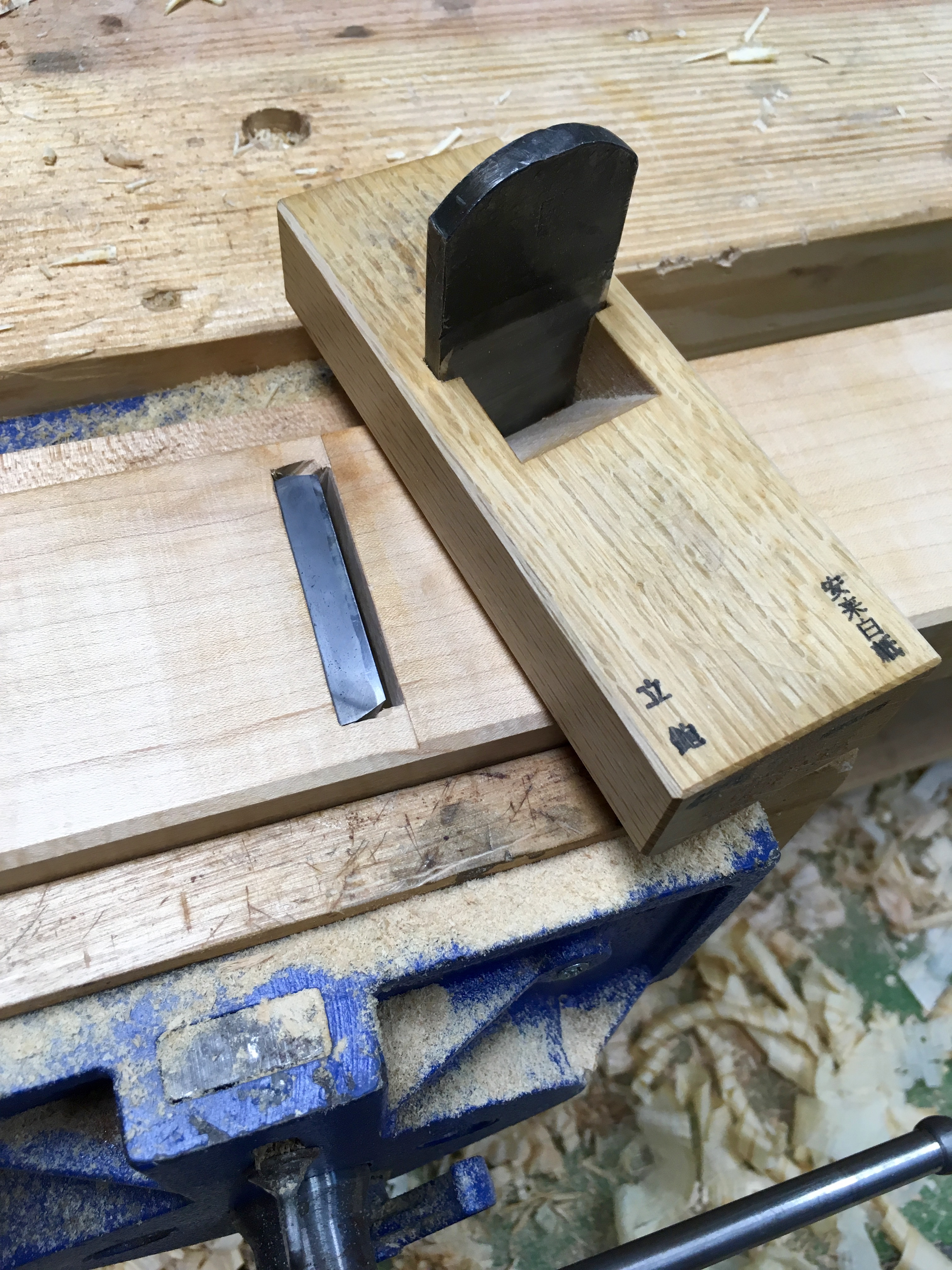 Then refine the conditioning with a scraper plane.  I set this kanna up as a smoothing plane which means two contact points.