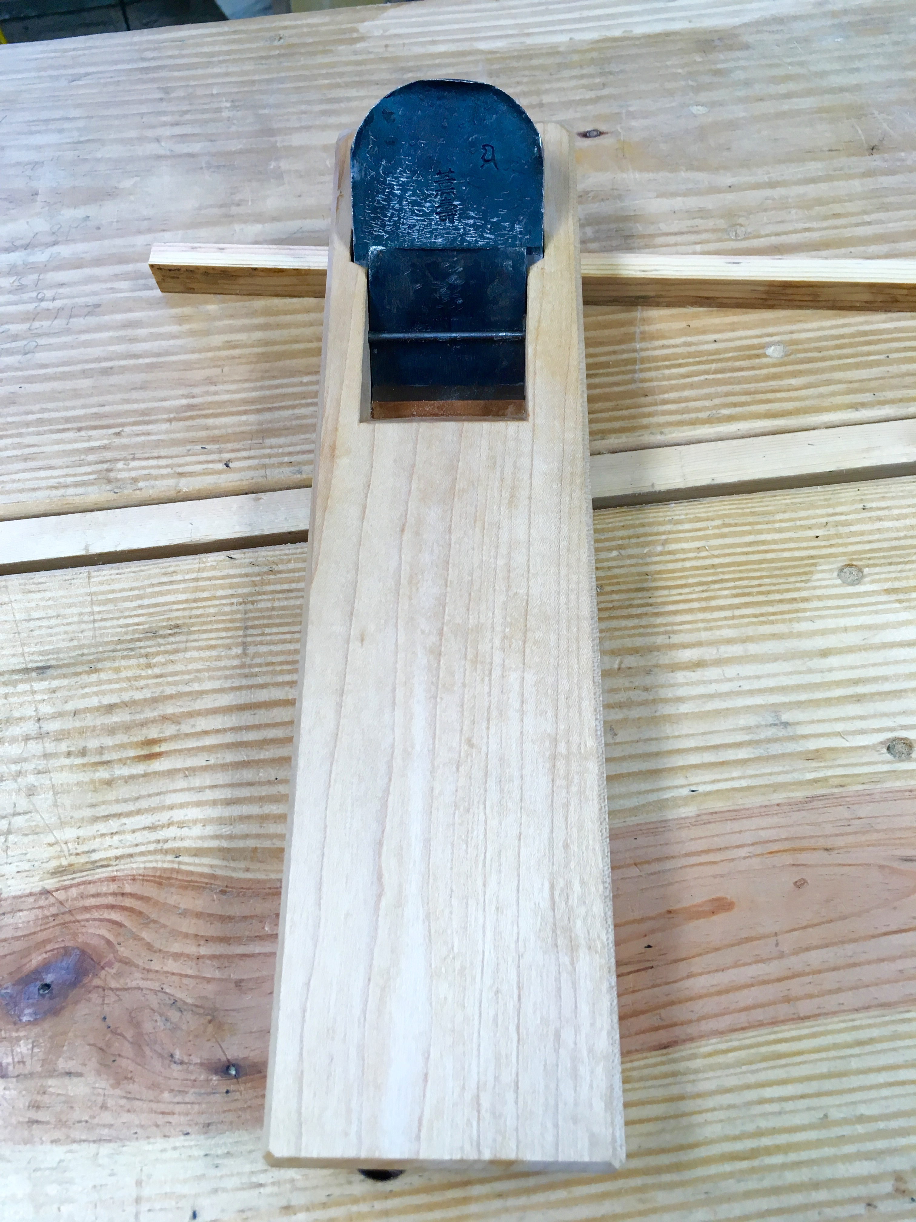 To fully transition to using the kanna I needed to have a few working planes. At the very least I needed one for rough work (jack plane), one for truing (jointer) and one for finish planing (smoothing). I managed to salvage one of my original dai by installing a fairly thick shim and reworking the bed. That kanna will be used for rough work and I cambered the iron accordingly. To end up with a finishing/smoothing plane the path was a little more involved. I purchased a used blade and chip breaker from Japan thru the big “E” auction site and I had to learn to make the dai (plane body) for it. There were several ups and downs, but I managed to bring everything together in the end. Which brings me to the truing/jointing plane.