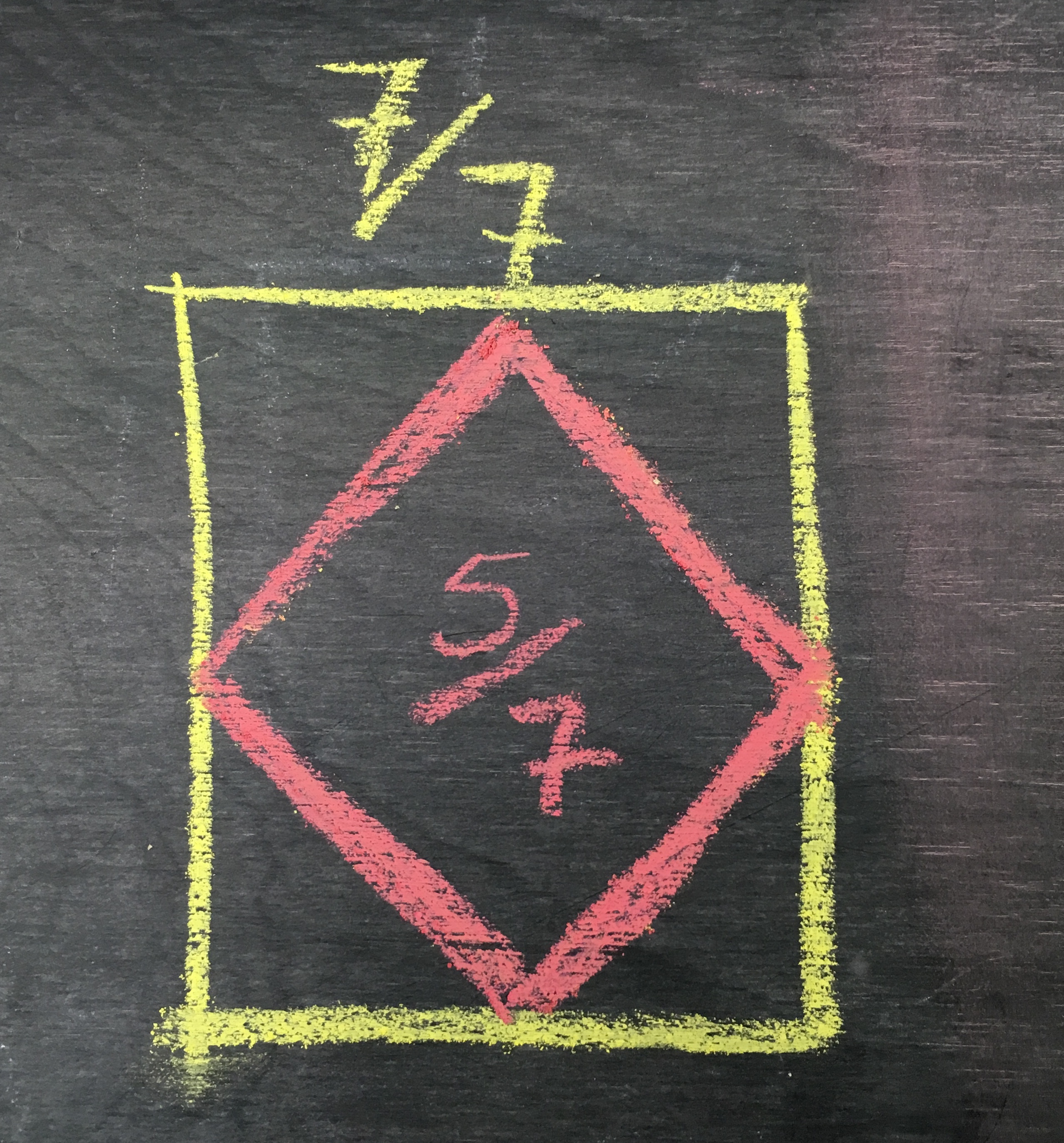 Then I use a miter gauge or straightedge to connect those midpoints to create the 5/7th square.