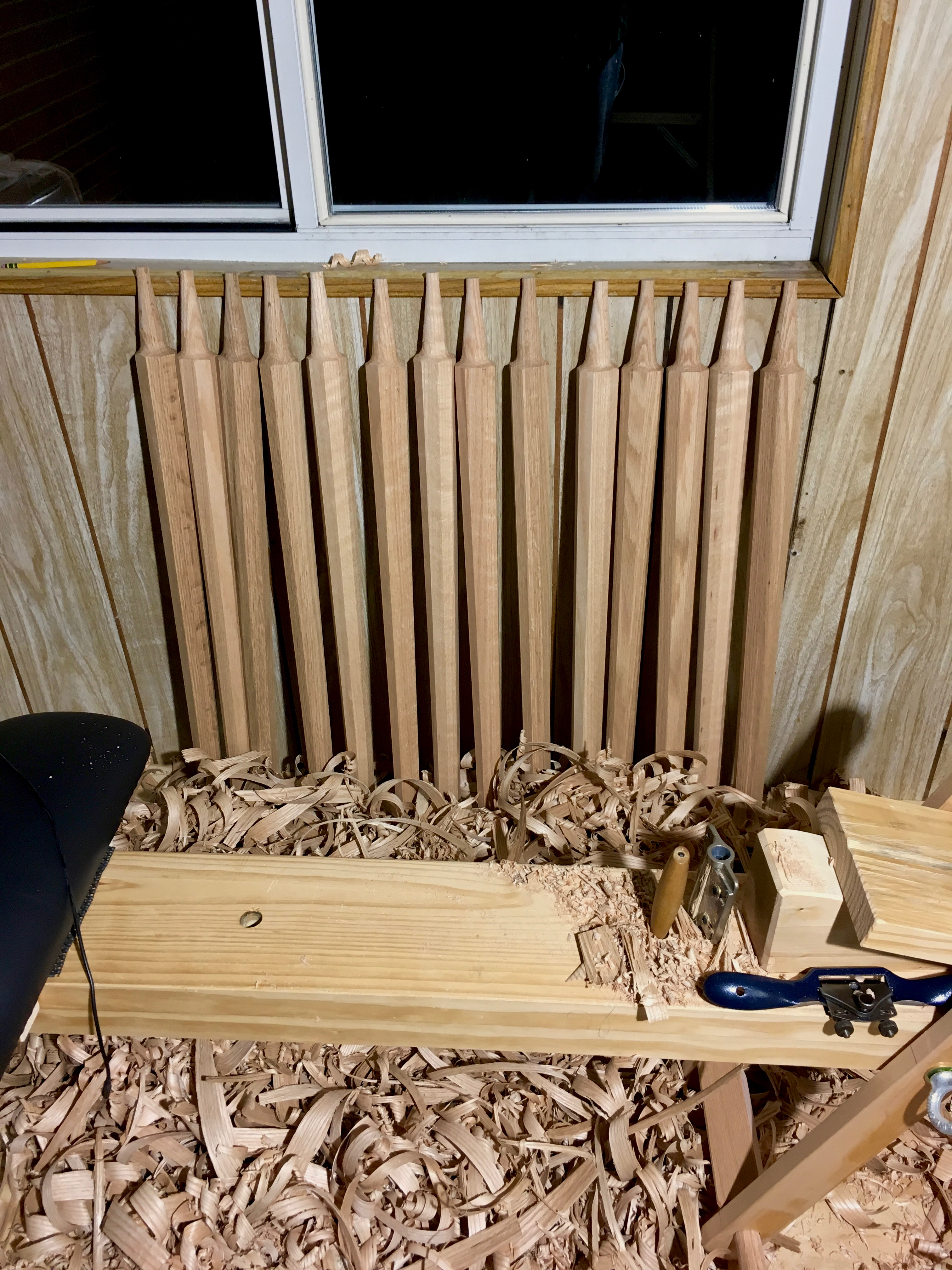 I spent the past several days working on the legs.  I roughed out all of the tapered octagons and their tenons.