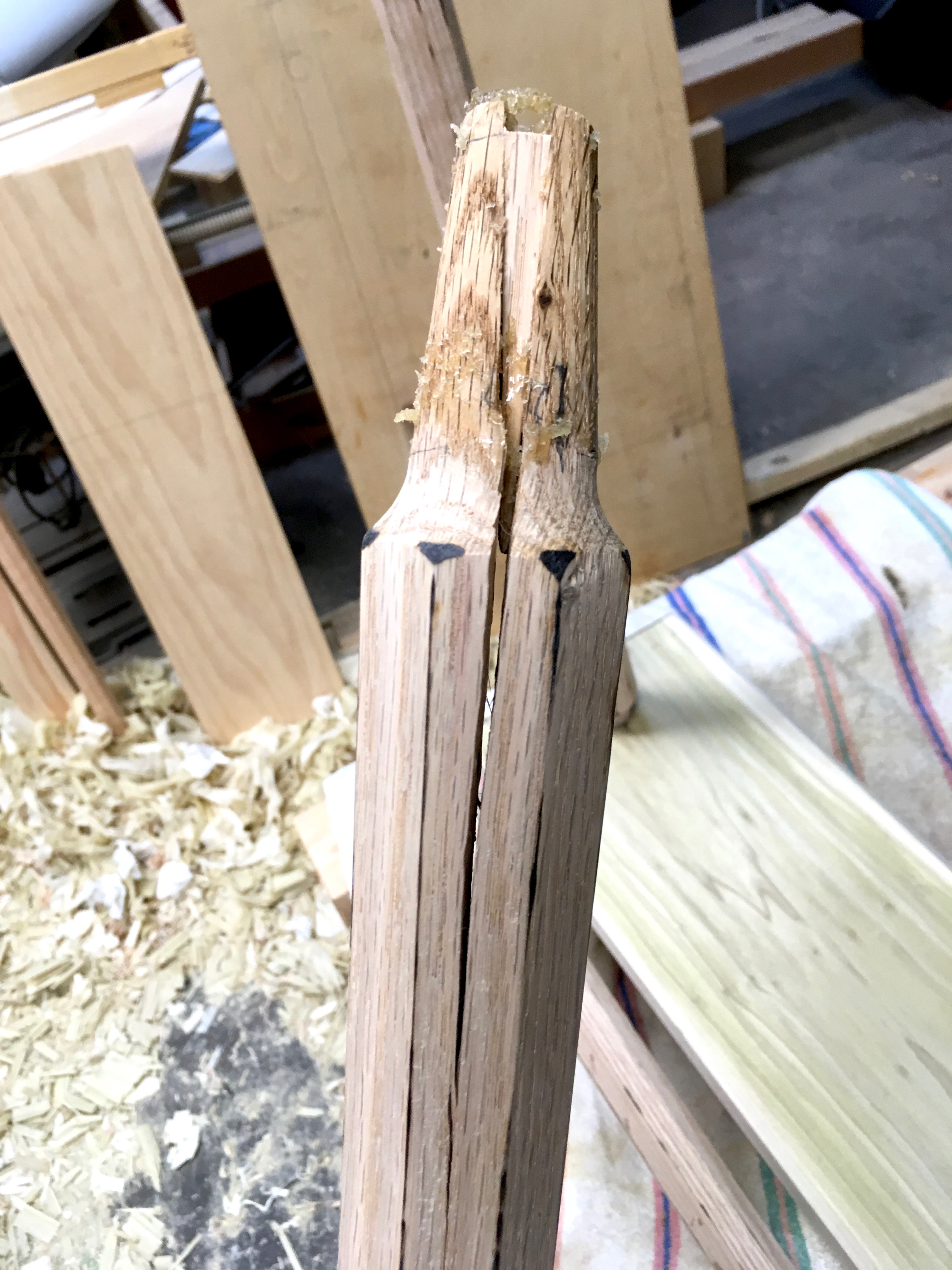 A good bit of experience was gained at the shaving horse making the twelve (plus two spare) legs.