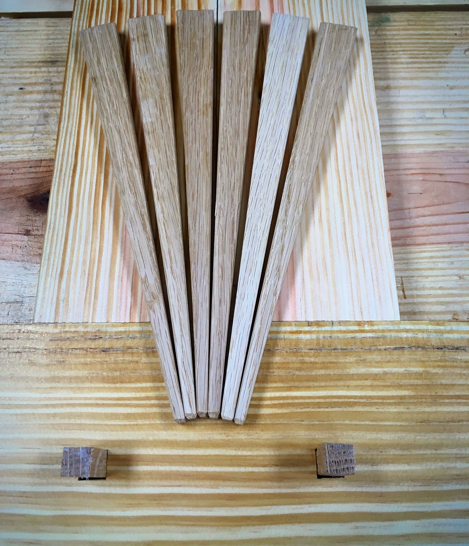 Finally, I ended my day in the shop today by fashioning the required pins and wedges.  I made these from white oak.
