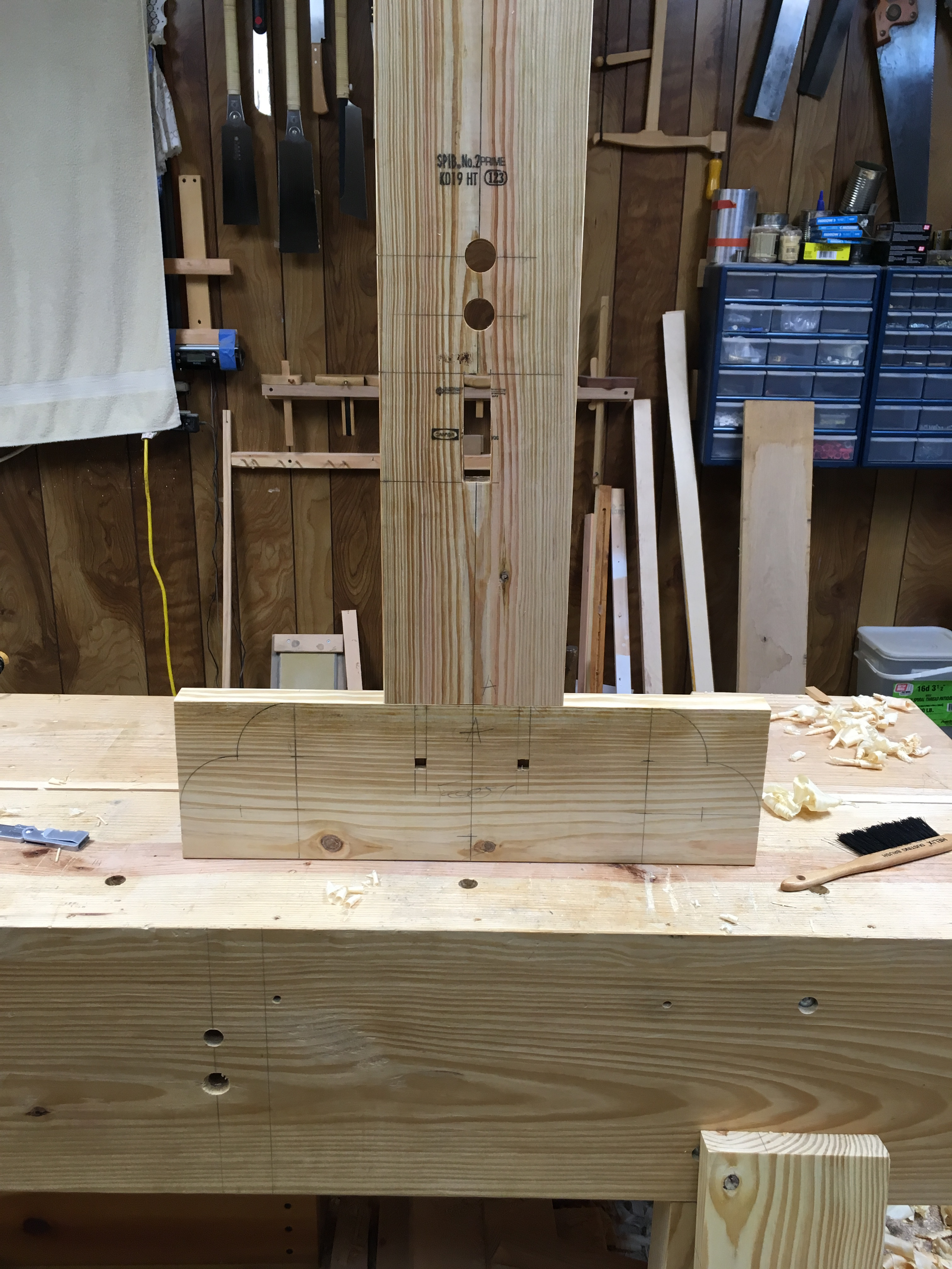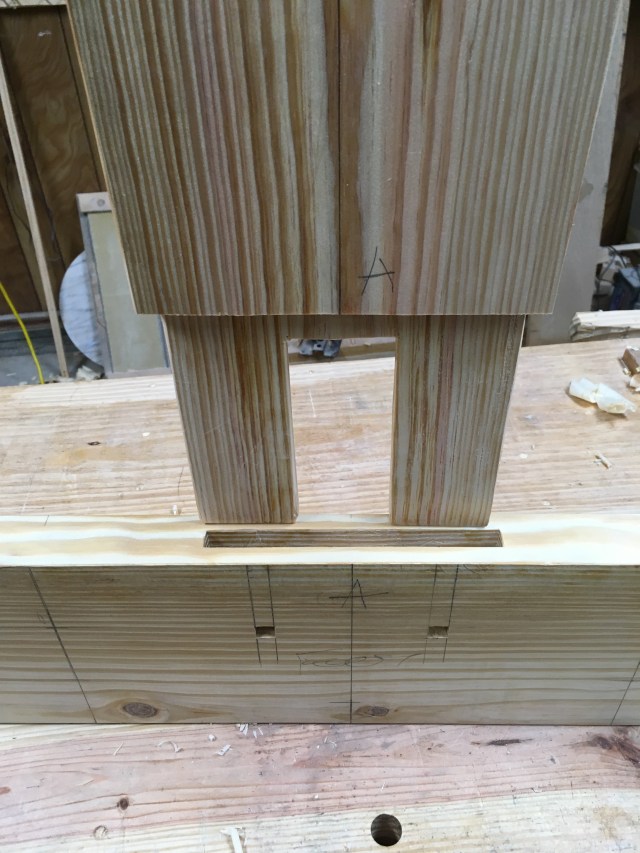 Luck and brute force played a role in those mortises as well. My big fear was when mortising from each side they would be misaligned when they join up. The density changes in SYP has a tendency to shift tools around as you cut through.