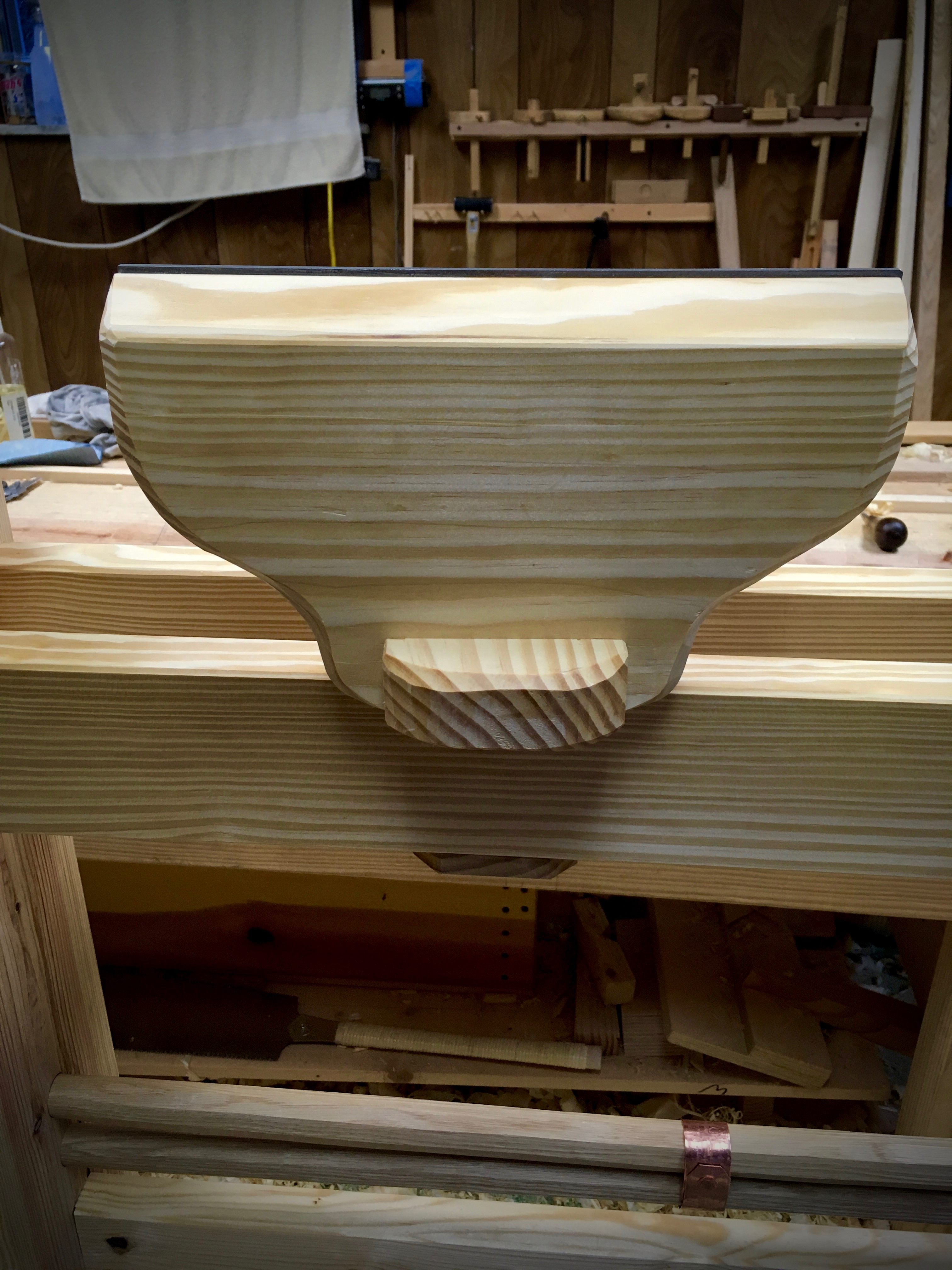 The remainder of the shaping is decorative, save one element.  The edge directly opposite the wear strip needs to have a heavy bevel so that the tools can be angled down in use.