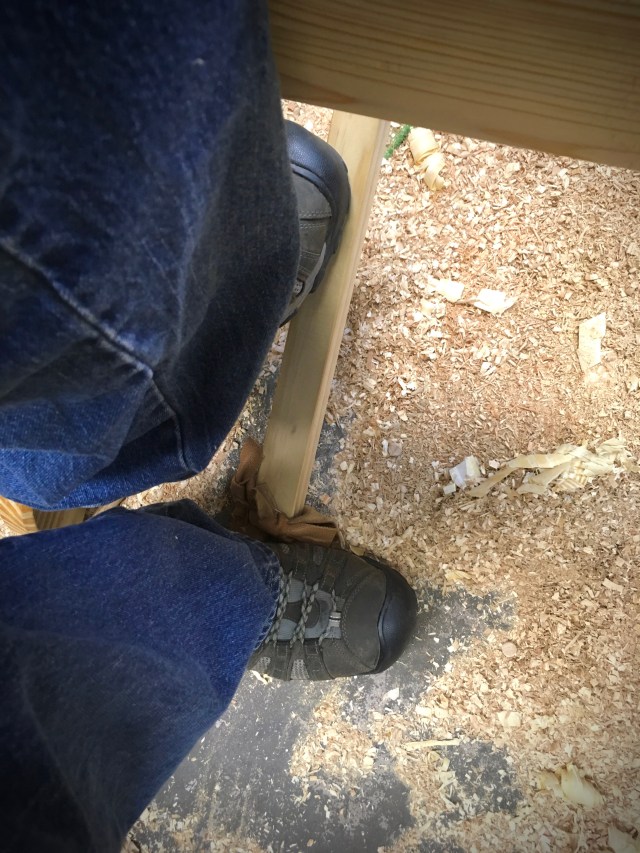 My assembly table I used sometimes for boards I couldn’t fit on crappy bench for planing. It would skate all over the place as my floor is tiled and tiles are smooth, so I placed sand bags around the legs and that did the trick till I got sick of tripping over them.
