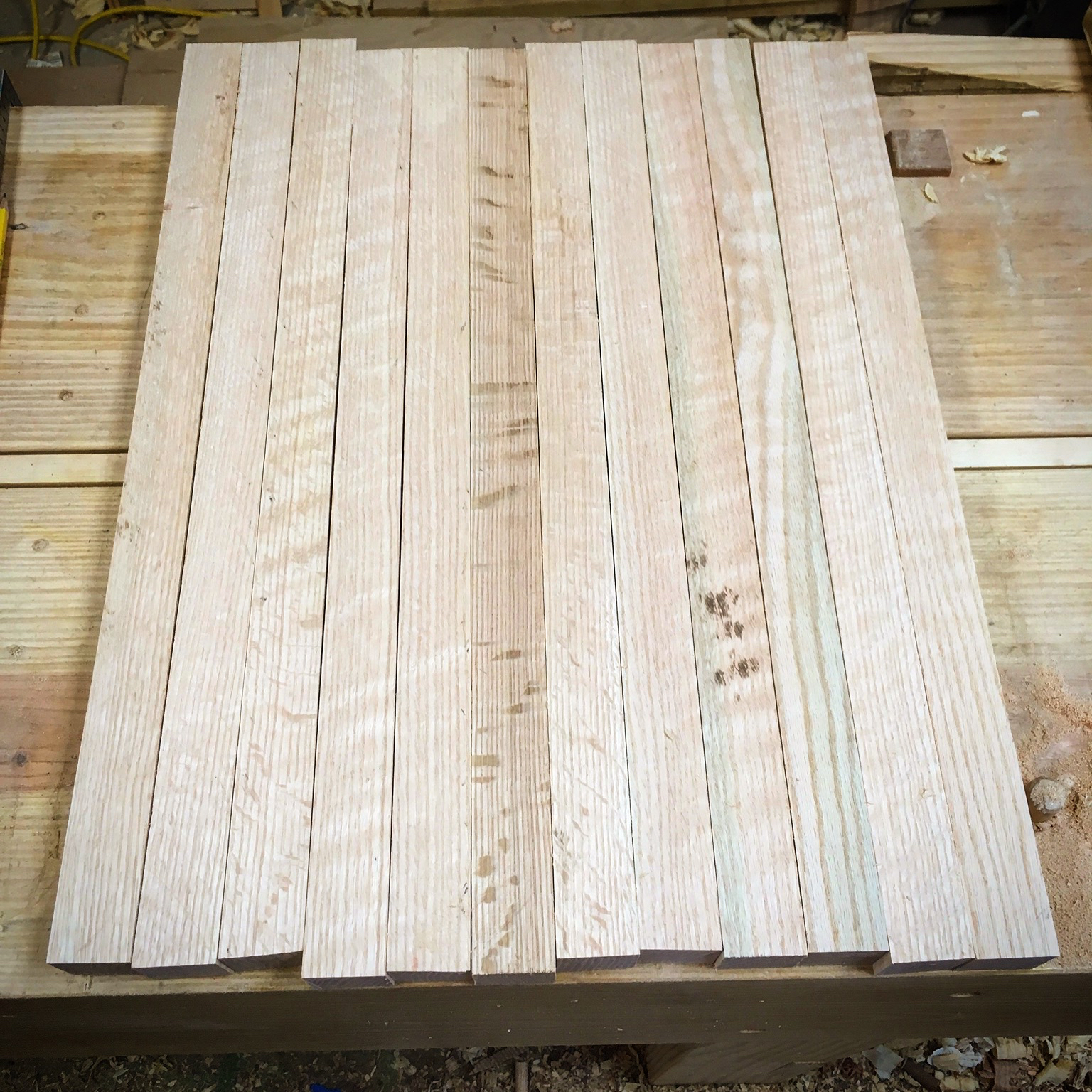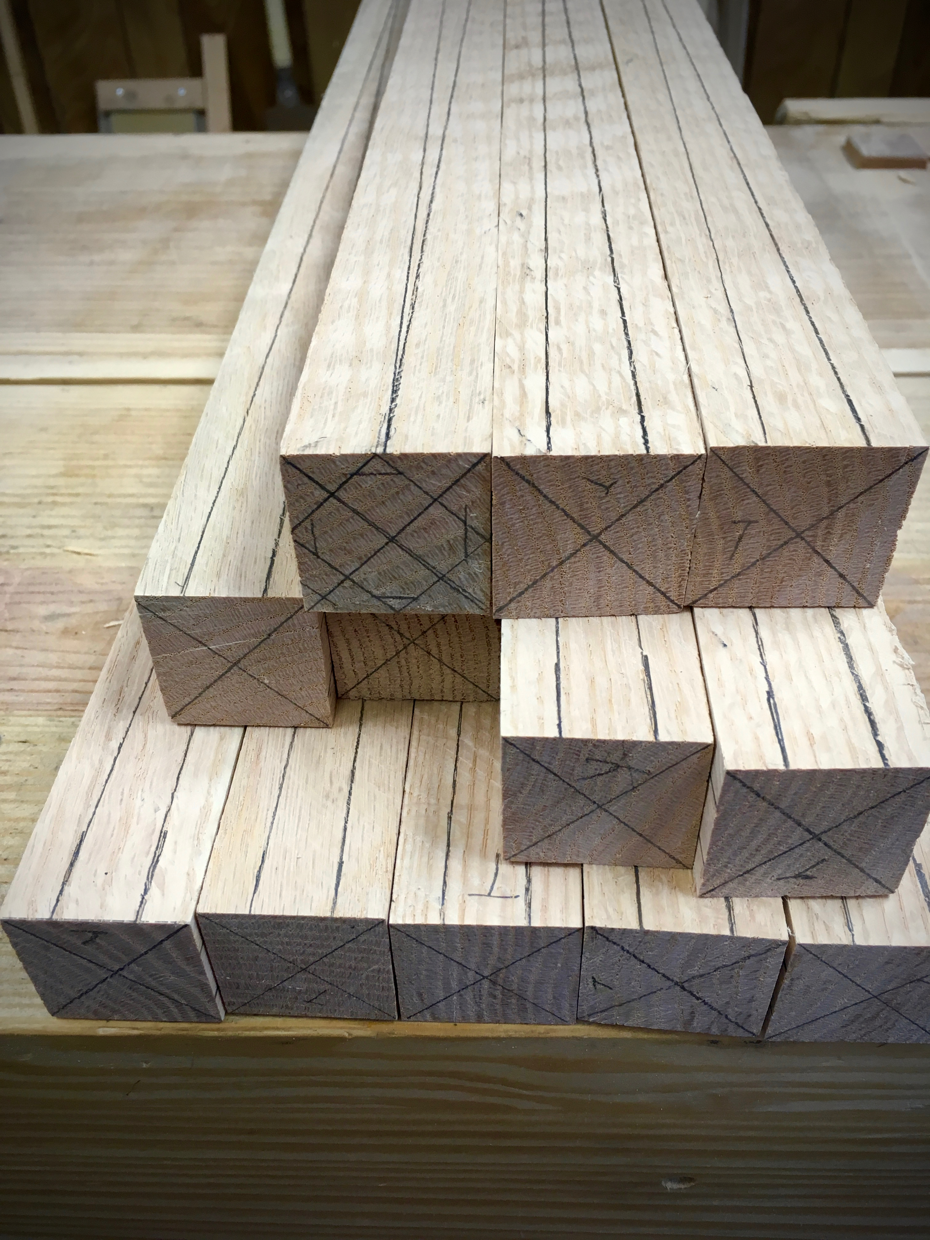 These four stools will have SYP seats, red oak legs and white oak stretchers.  I began by milling the red oak leg stock.