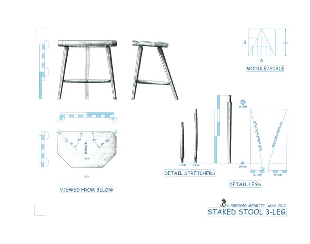 I’m lucky in that Chris Schwarz just completed a run of High Staked Stools built in this manner.  So he effectively did all of my prototyping for me (thanks Chris!).  He worked through several seat, leg and stretcher shapes in his process.  His posts about them allowed me to see the forms, eliminate options and firm up my own plans.