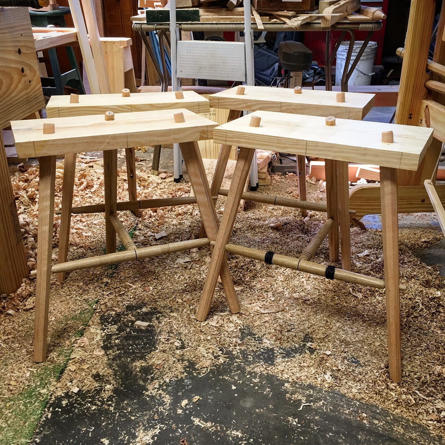 Like Matt, I was wondering about glue up on these. Did you loose fit the stretchers in the three legs and work the legs into the seat all at once, a little at a time, or did the legs have enough play that before being run home and wedged that you could splay the legs out to get the stretchers in place?