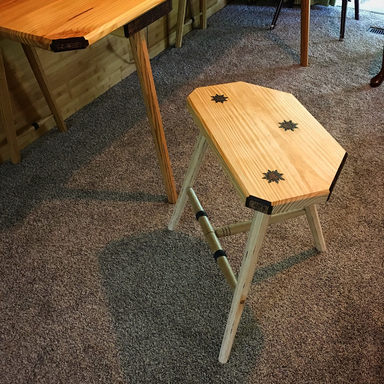 Here is the unfinished stool next to one of the tables. Note the color difference that the oils finish imparts.