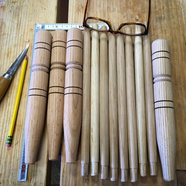 Turning the remainder of the three legs for this little stool went fairly quickly. Helped in part by and early start and a cool morning. A welcome change from the heat that is the norm for this time of year.