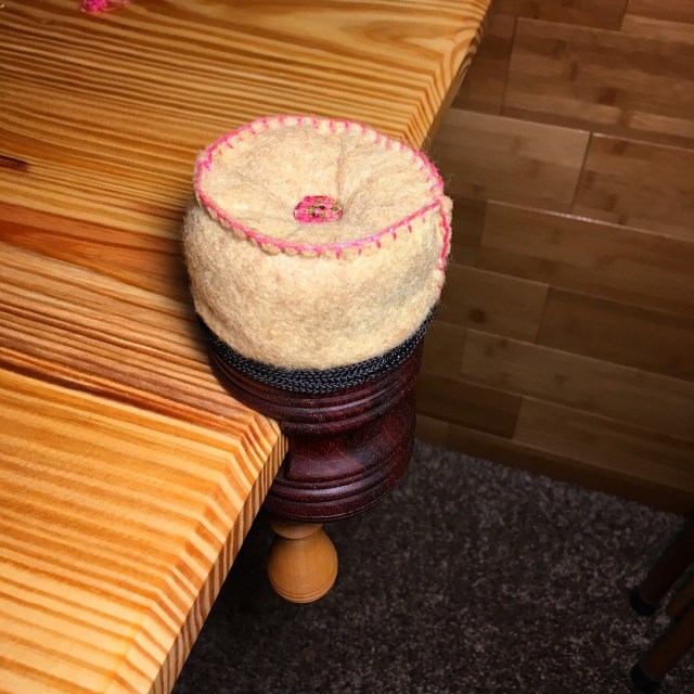 I did manage to finish the first version. I even made the pincushion myself. Although my sewing ability is a bit lacking and I ended up taking it apart and redoing it.