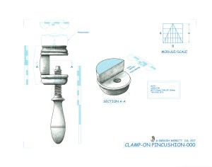Admittedly, I have become obsessed with the clamp idea. Not that we have any great need for clamp-on pincushions, but the idea has lots of applications. While searching the internet I stumbled on a different arrangement of the same idea. That version lends itself to being used on a greater variety of table thicknesses as well as the ability to be mounted through a hole in the table top.