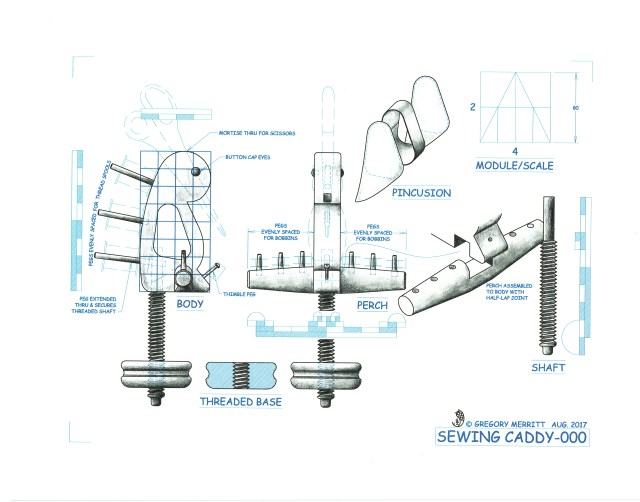 Over the following days I added the finish, made the pincushion and worked up a proper design drawing.