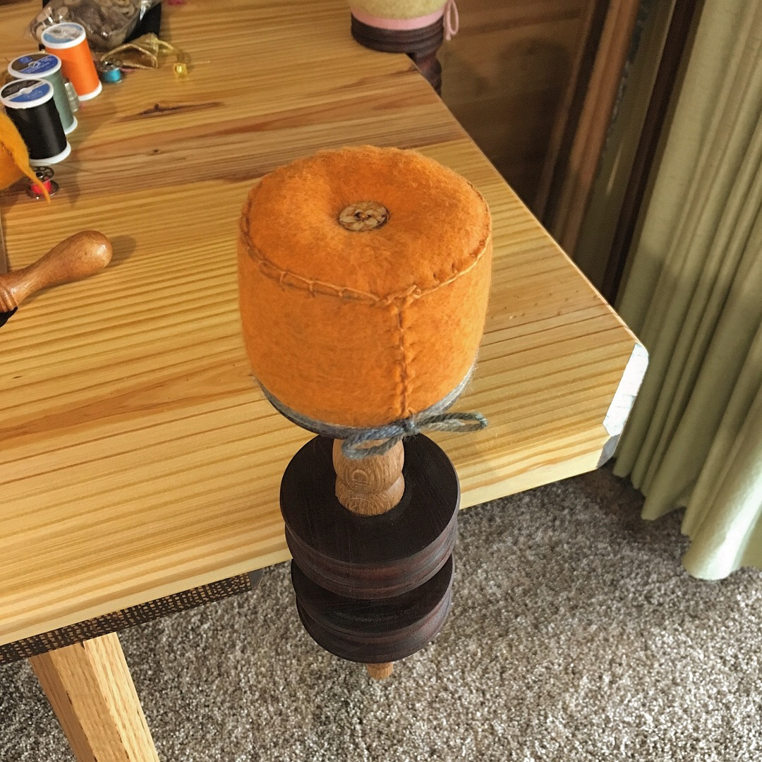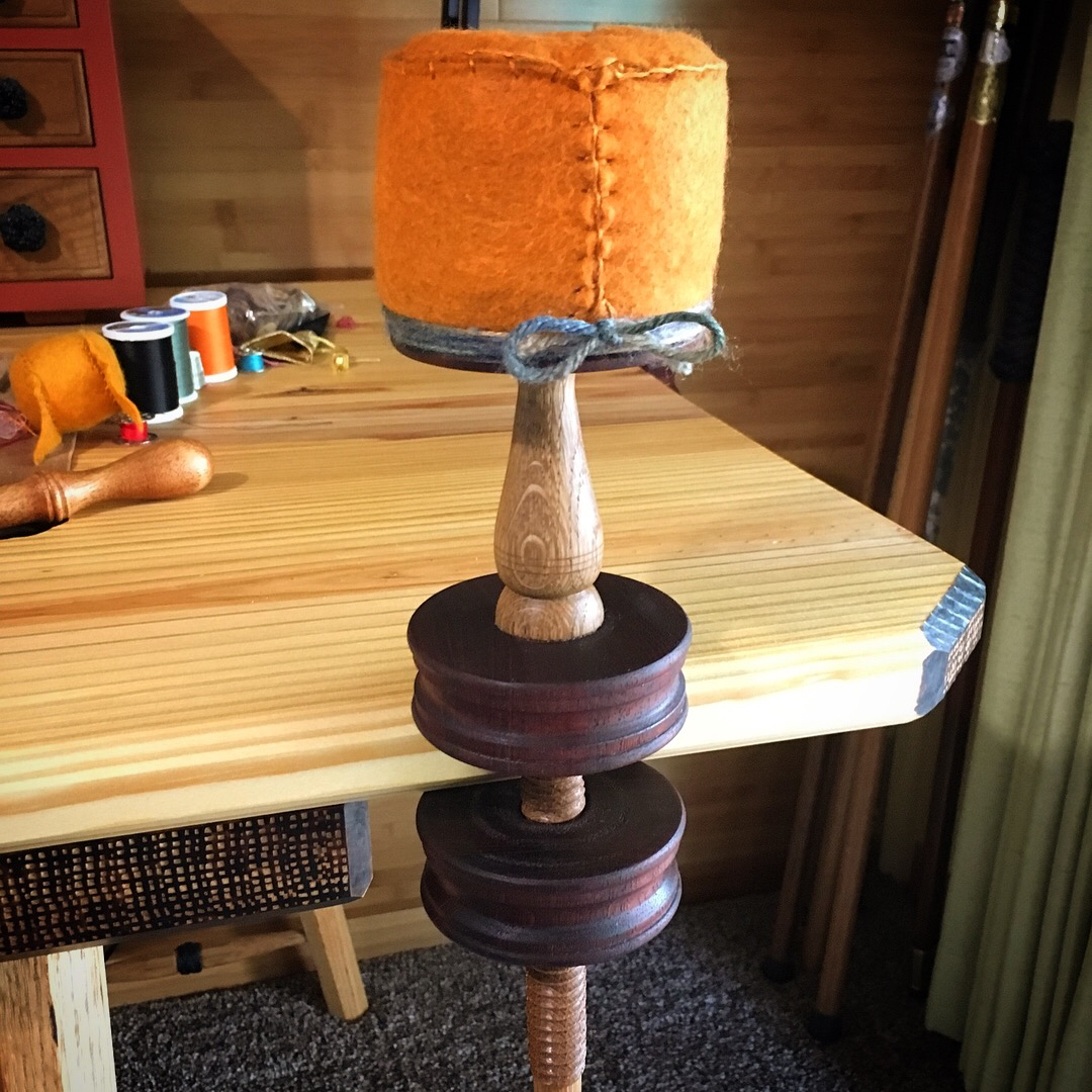 I did manage to finish version #2 of the clamp-on pincushions. After the third coat of Tried & True finish had cured, I made the pincushion for it. I’ve been using felt for these pincushions and it seems to be working well. The nice thing about the felt is that it doesn’t require any fancy seems. A simple blanket stitch that butts the edges together is all that is needed.
