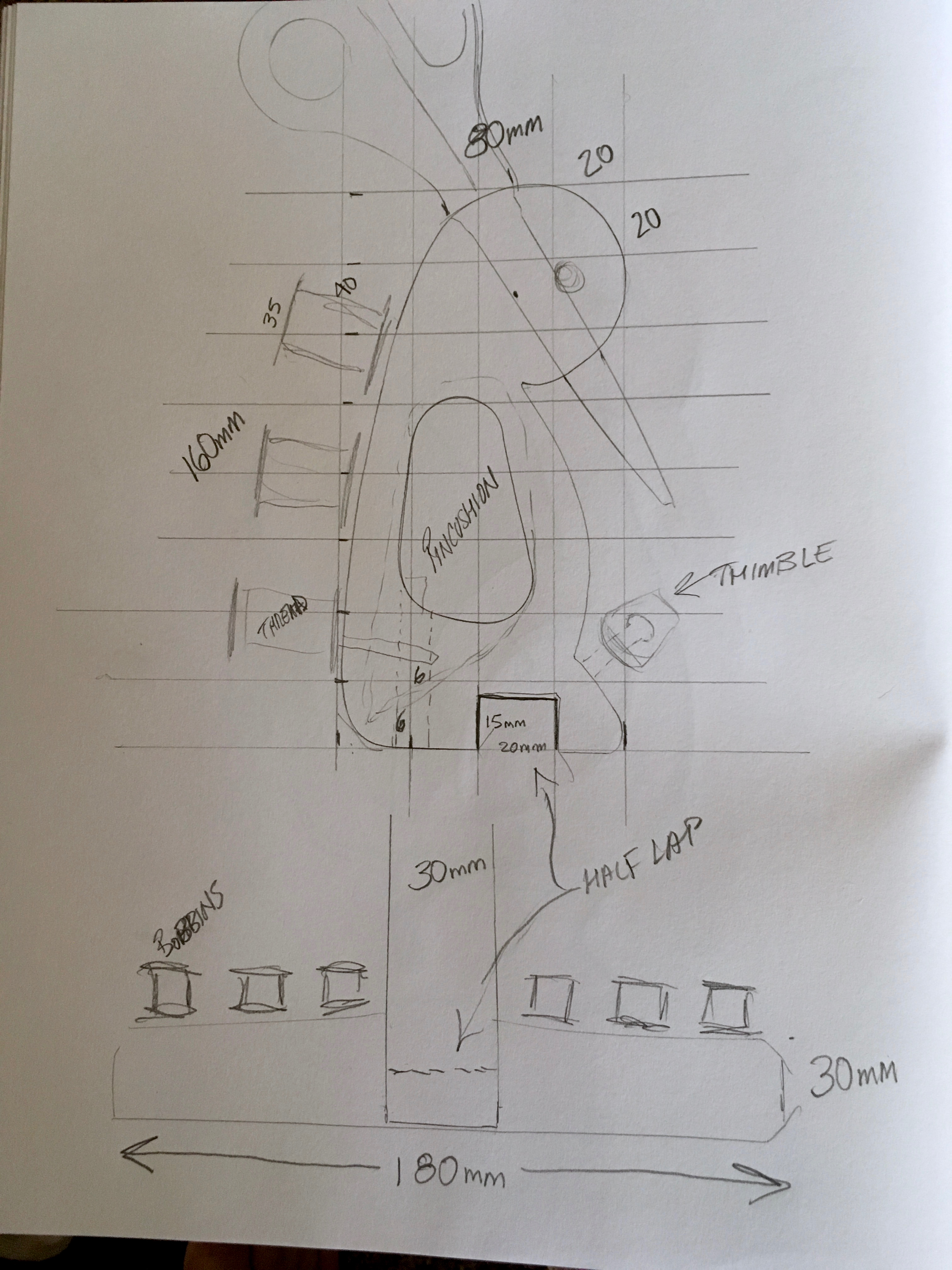 Over the following days I added the finish, made the pincushion and worked up a proper design drawing.