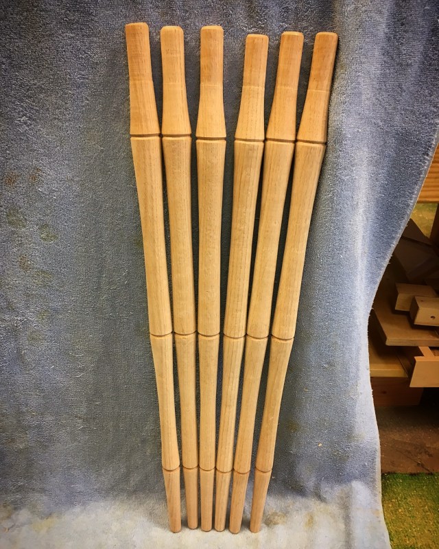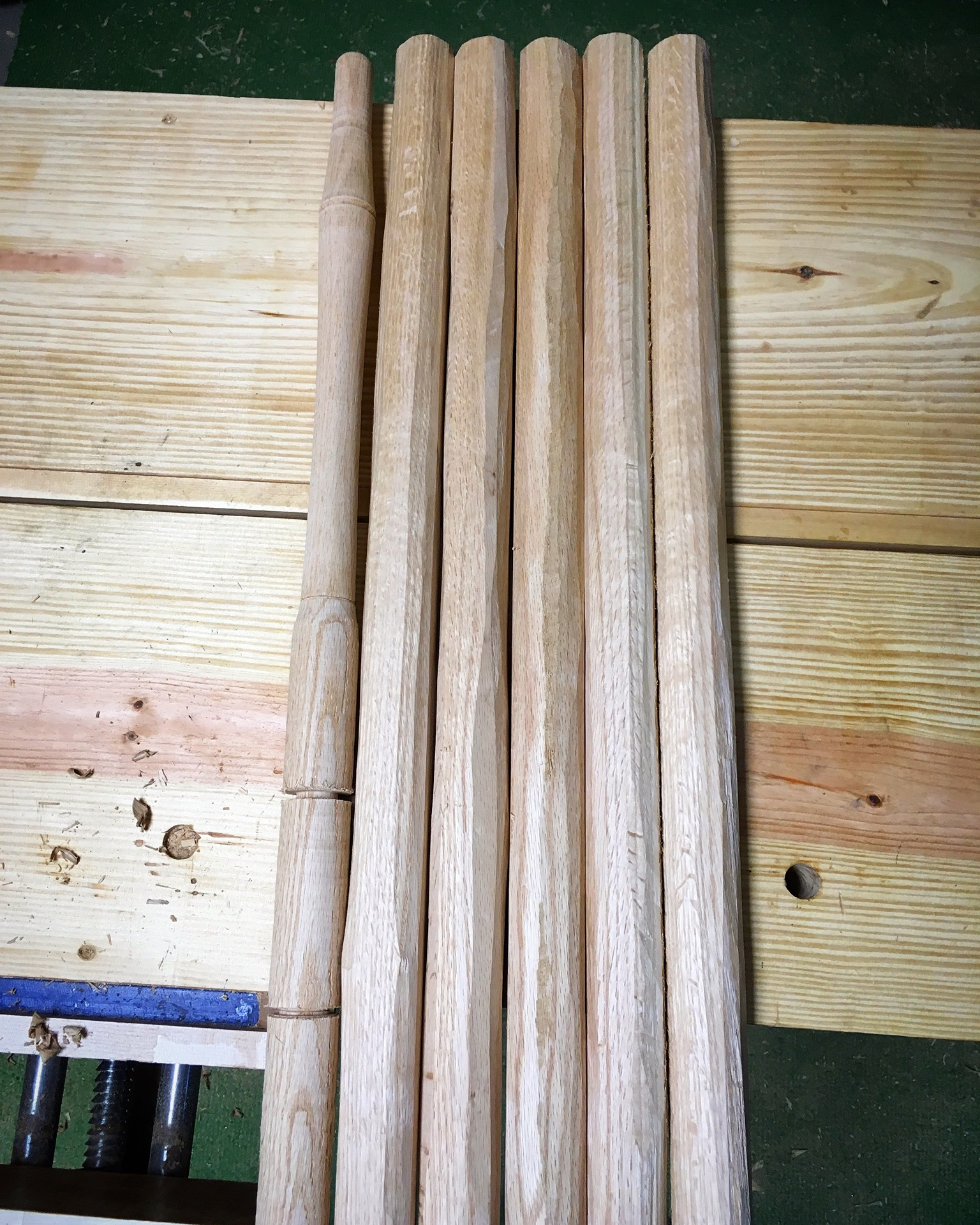 In an effort to reduce the amount of material that needed to be removed at the lathe I came up with a process that involved a little more time at the shaving horse.