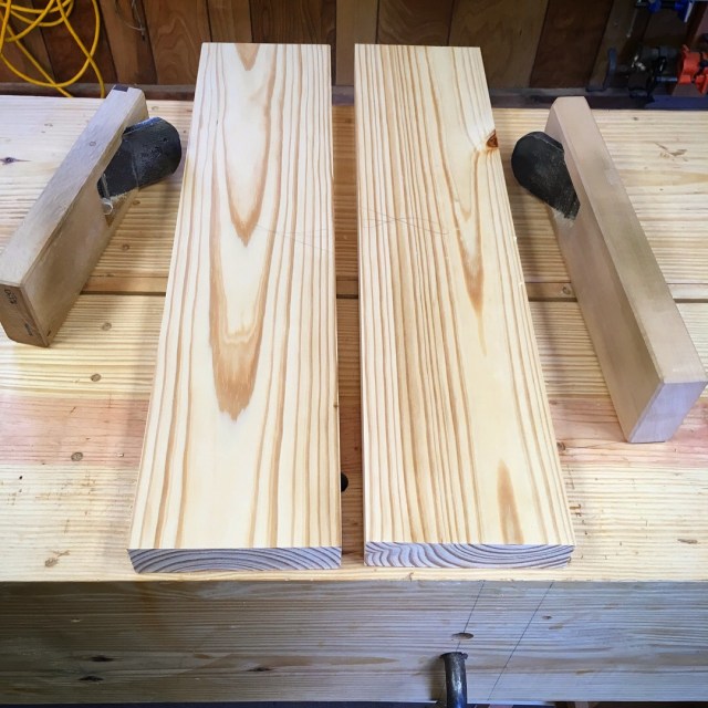 With the legs completed, I turned my attention to the tops. These tops are from southern yellow pine. Once they were cut to length I planed them flat and square.