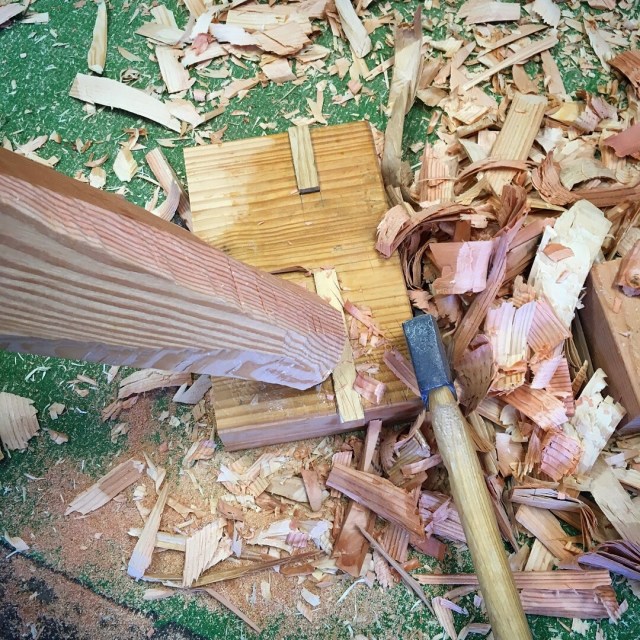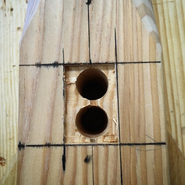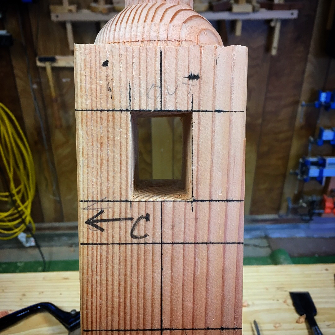 Again, the fir is tough stuff and hard on edge tools. So lots of sharpening took place while chopping these mortises.