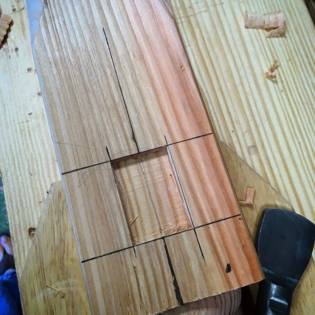 I began chopping the mortises by first chopping a shallow mortise on each side.