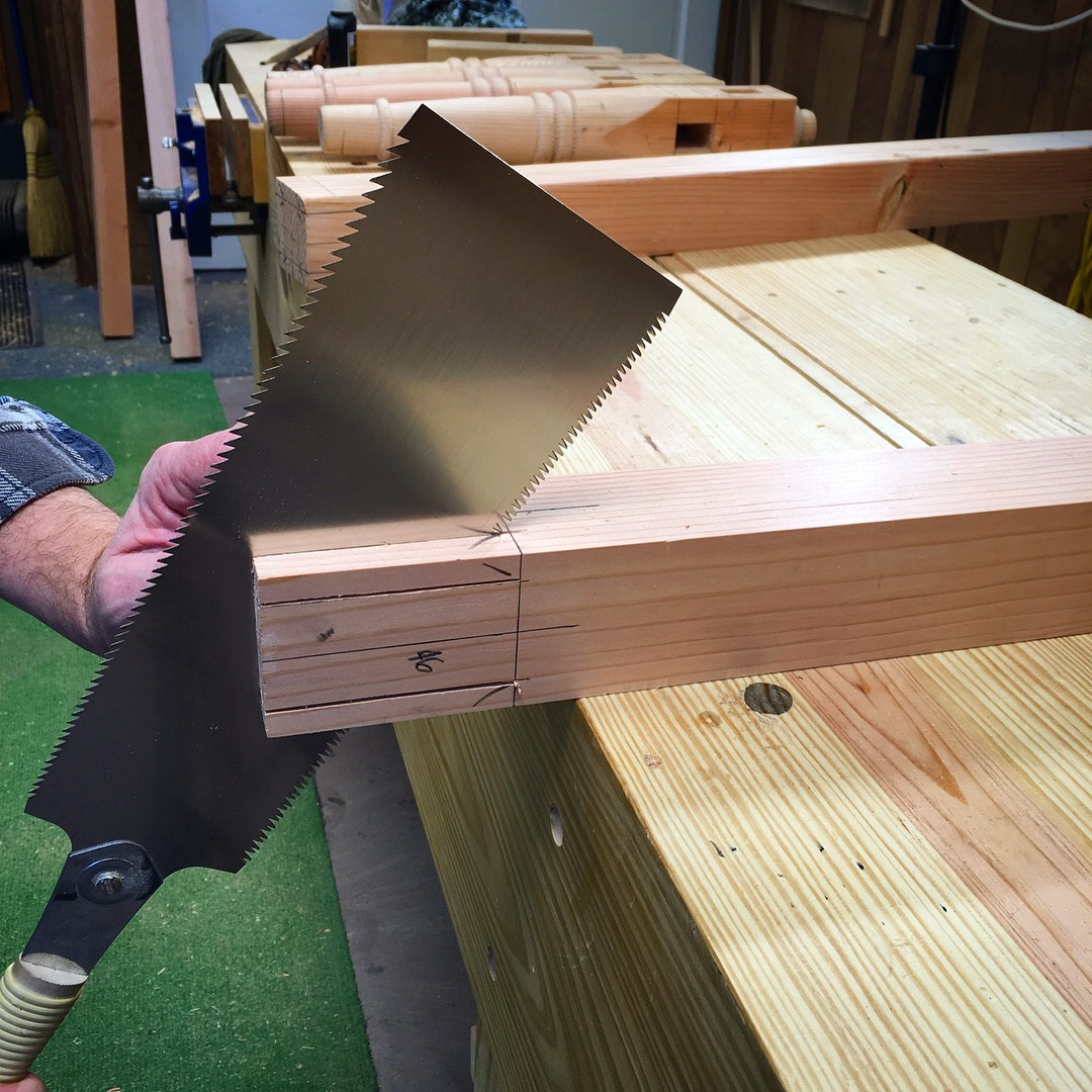 To cut the tenons, I first made all of the rip cuts with my largest ryoba saw.