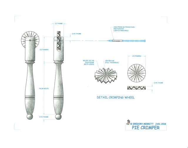 Here is yet another small project for you lathe enthusiasts, a pie crimper. A simple little tool used to join the top and bottom dough sections of pie prior to baking. It also imparts a decorative edge to boot.