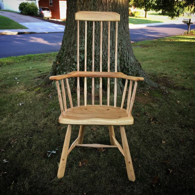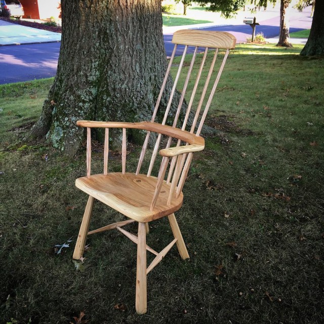 Then promptly began work on another Welsh style stick chair with a three piece armbow and a high back. This one is all ash with a finish on linseed oil and beeswax.
